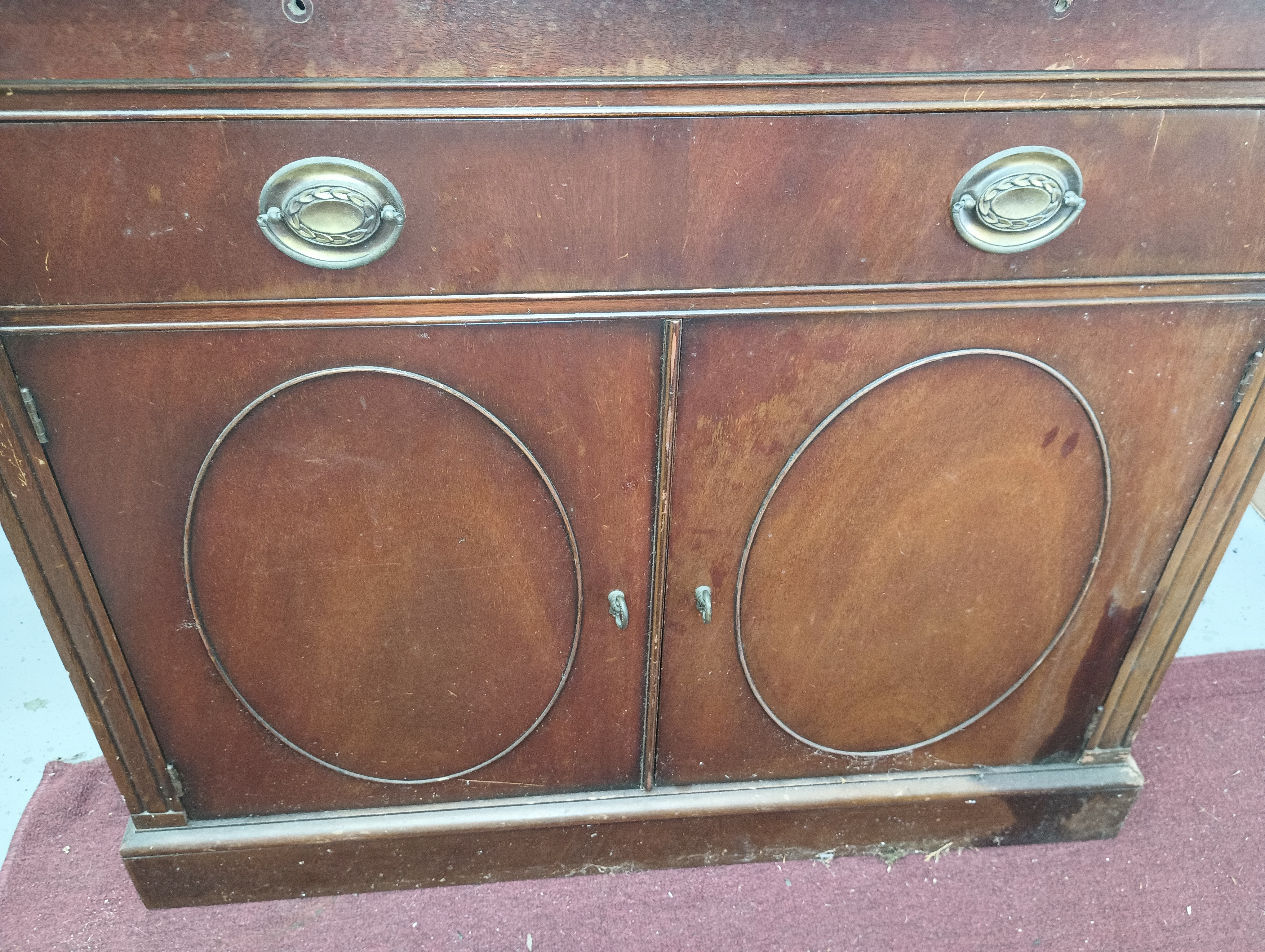 Based on your detailed photos, the Drexel New Hampton Court sideboard appears to be in fair to good vintage condition, with the following breakdown: