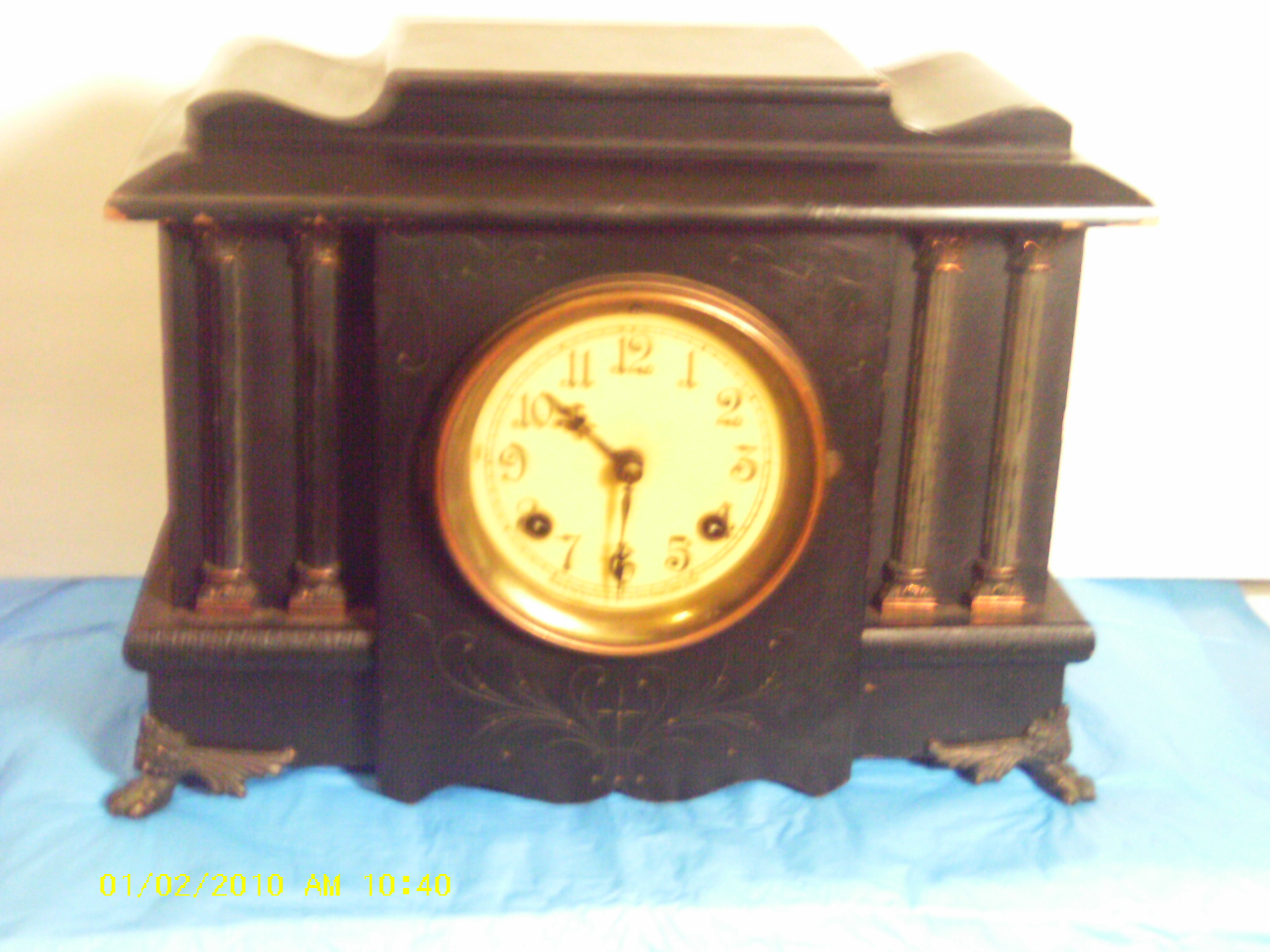 New Haven Black Mantle Clock ,Made In New Haven Conn. Circa 1900 ,The Elsworth Model .Good Condition. The Wind Up Key Is Missing.