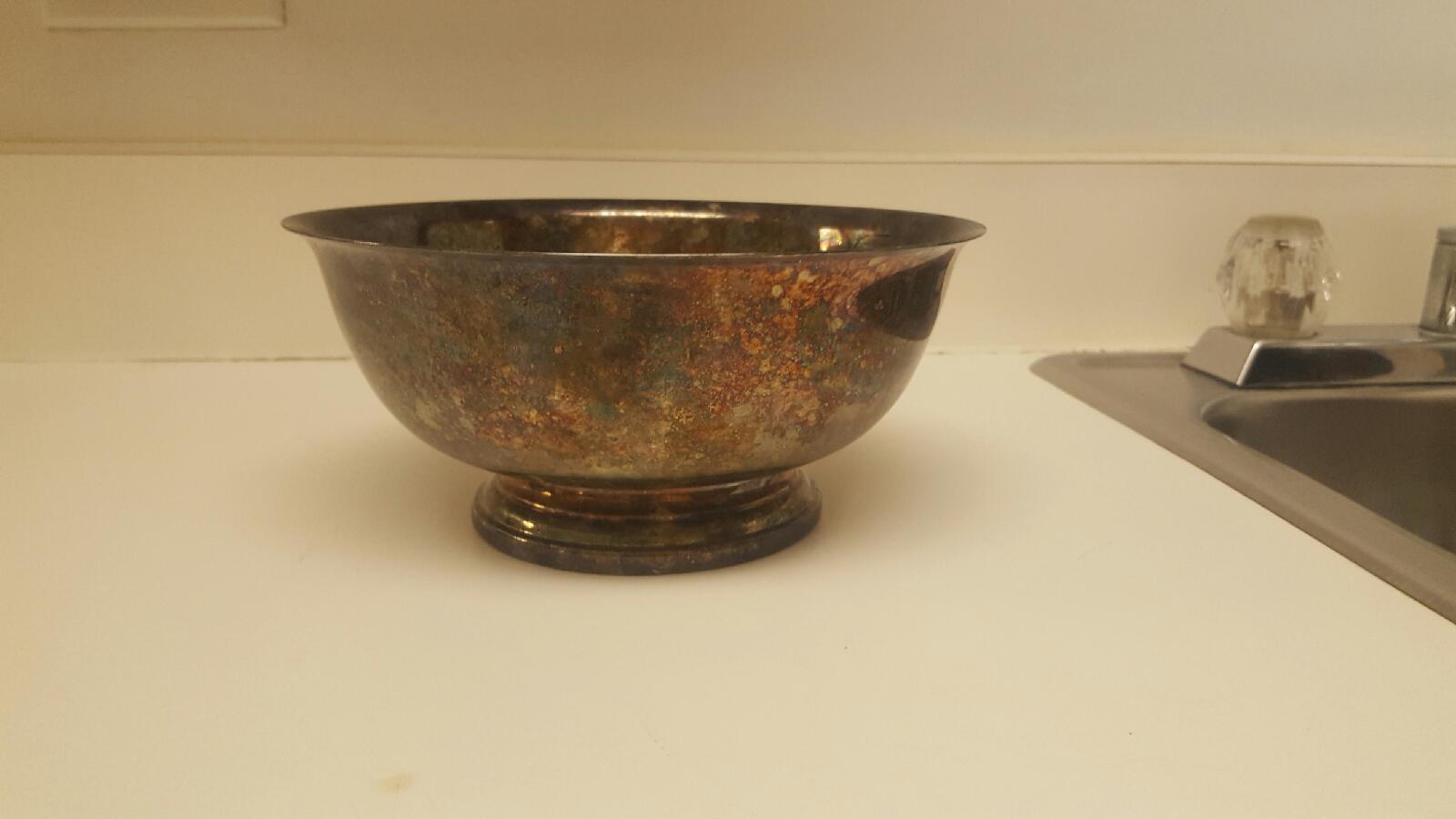 Made by Gorham. 8" in diameter and 4" tall. Has code YB78 engraved on bottom.