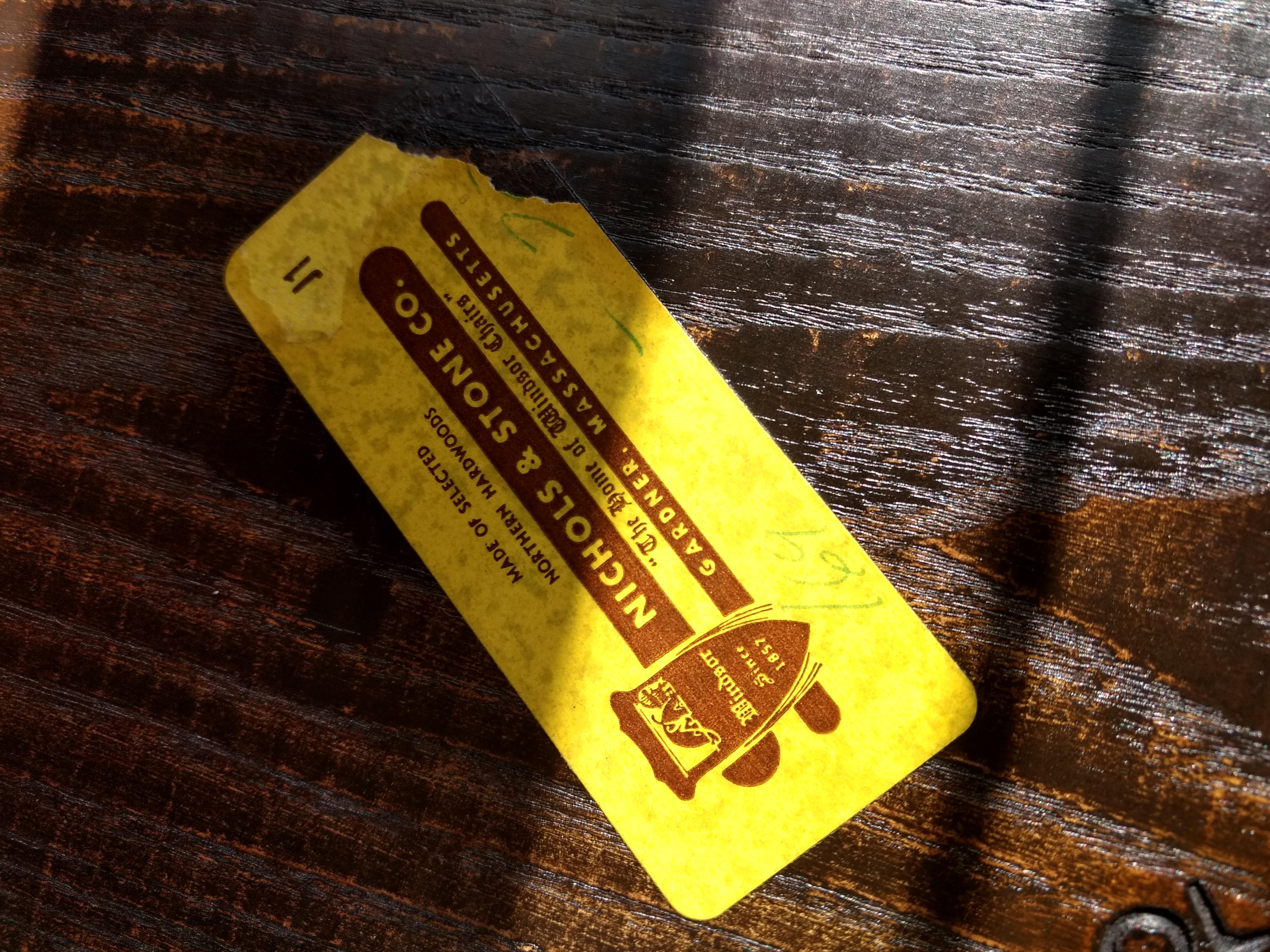 This bench is stopped Nichols & stone on bottom. Also has a yellow label on bottom which reads Nichols & Stone Co. The home of Windsor chairs. With a # 169 - looks like a 7 and the rest has been torn off.