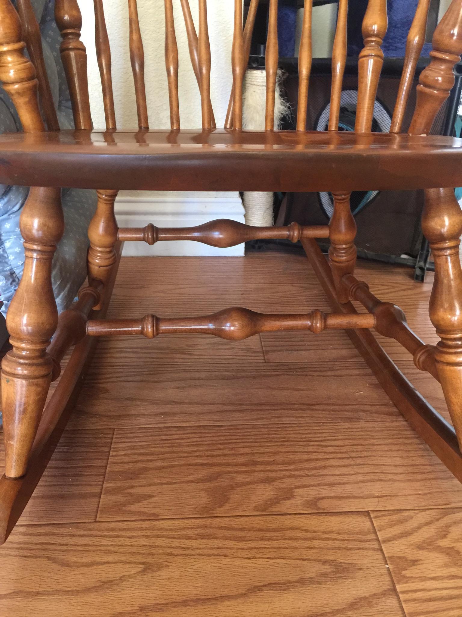 Don’t really know how old the rocker is but it belonged to my mother-in-law who had it for years. It’s in great shape and has a stamp & sticker on bottom of chair of Nichols & Stone Co.