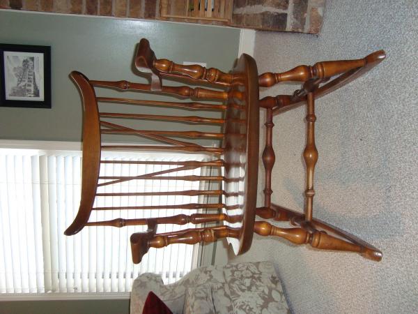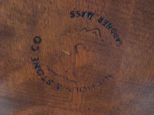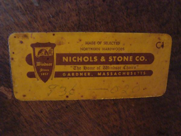 This Nichols & Stone rocking chair was just purchased at a yard sale in our neighborhood. We were just curious as to the date it was made and an estimate as to it's value. It is in very good condition. I'm guessing from the orange label on the bottom with "936-020" faintly written in pencil, it may have been made in September of 1936 with the "020" possibly meaning the finish used on it. Again, that is just my guess. Any info on this chair would be greatly appreciated. I found the company's history on Google and know it was made after 1900 since the brand states it was made in Gardner, Massachusetts and it's a "Nichols & Stone", but I don't know where to look to find an old catalog containing this chair. Thank you.