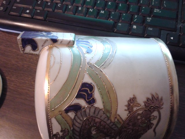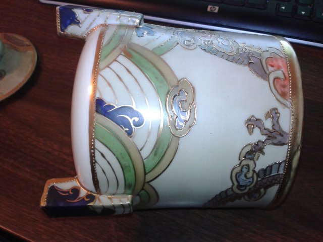 It has uneaven painting and bubbles in glaze and paint. Moriage does not completly cover all sides.