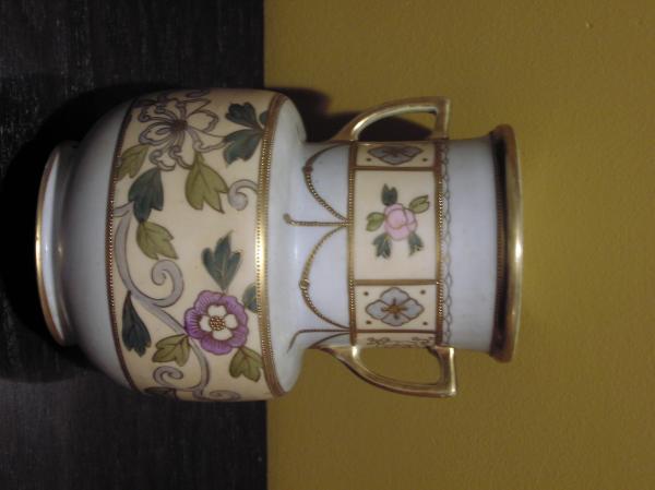 Nippon vase with gold bordering and flower detail