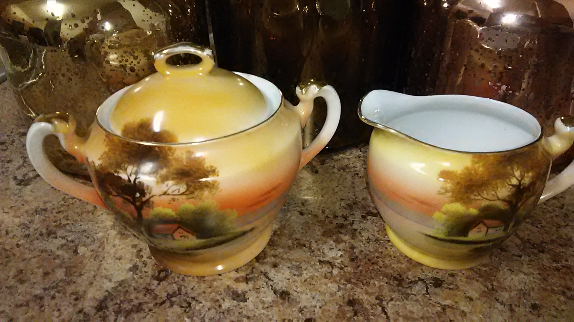 I was told that this was a genuine Noritake set, yet the pattern was unidentified. It is similar to a tree in the meadow, yet is of its own pattern type.