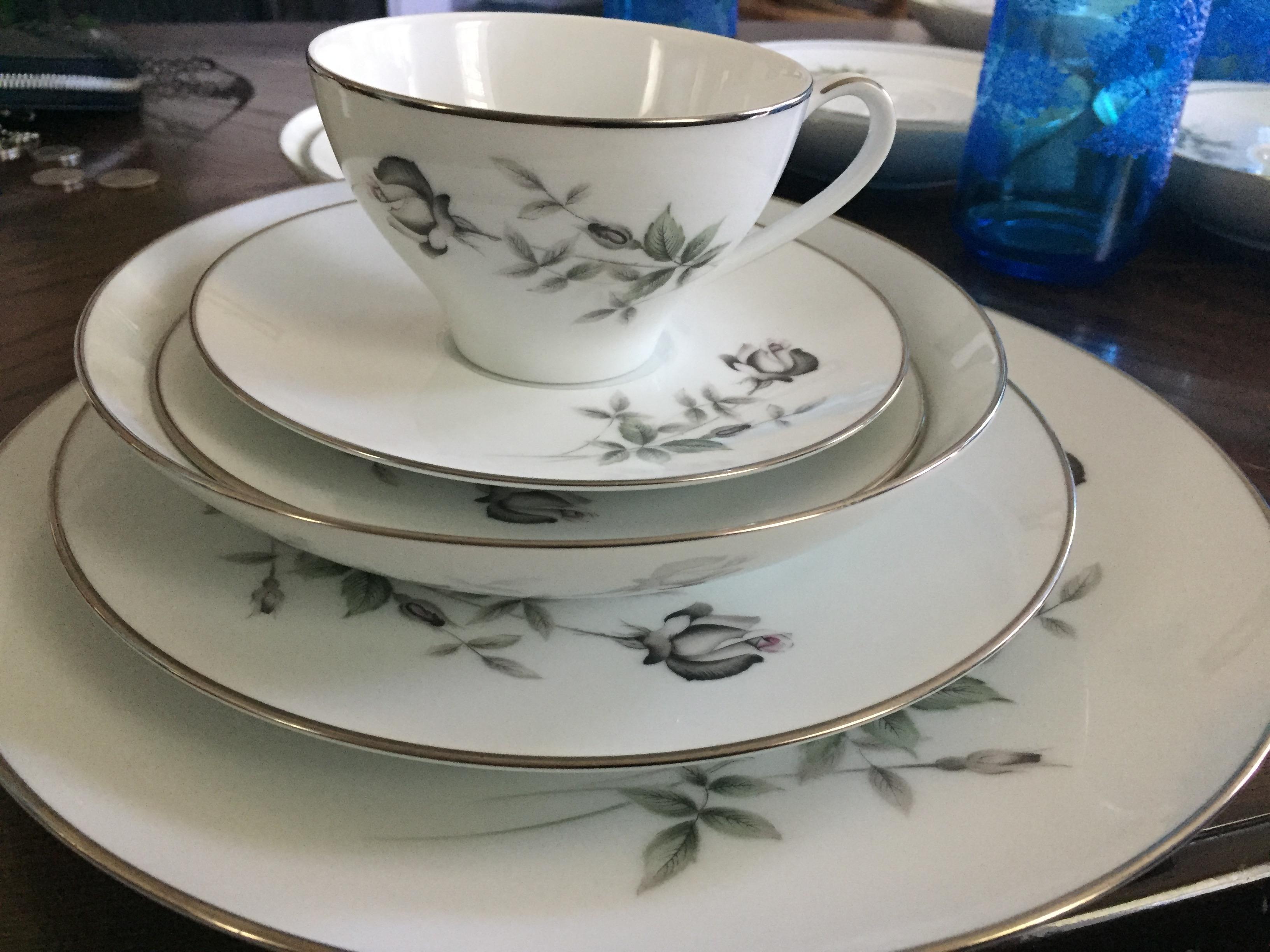 Service for 12, 2 butter dishes, Large serving platter, and gravy boat. Purchased from my great grandmother's estate back in 1995. It's Noritake China 6604 Janette in perfect condition. As far as I know, has never been used, only displayed in a china cabinet.