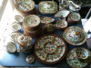 Full set of 12. Floral pattern, white center, cream, almost golden main with a red and gold edge.