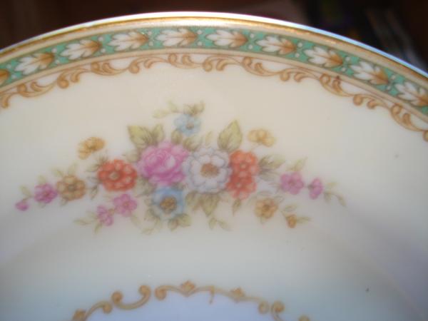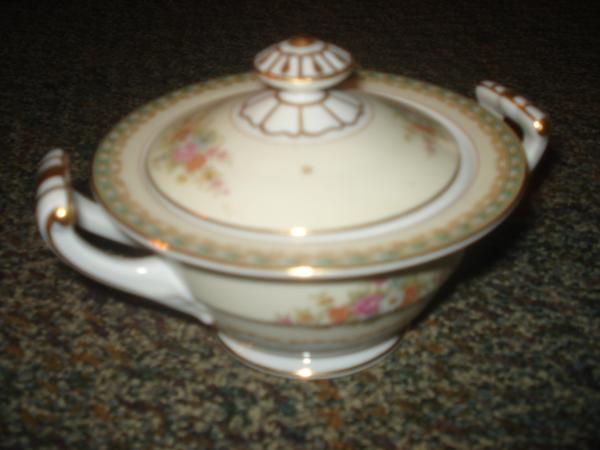 12 piece place setting of Noritake "Noreen" china including large round serving platter, medium serving platter, round oval bowl, gravy boat, sugar bowl, creamer
