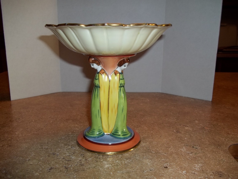 I'm having a difficult time trying to locate the info on this item. It has the red 1918 Noritake backstamp. 3 women form the pedestal & hold up the dish. I don't know what its use is intended for. Excellent condition. Also would like to know it's approx value. Any help would be appreciated!