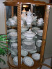 8 dinner plates,8 saucers,8 coffee cups, 8 salad plates,surgar bowl w/lid, gravy boat,8 berry bowls, creamer, round veggie dish, oval veggie dish, 8 bread/butter saucers