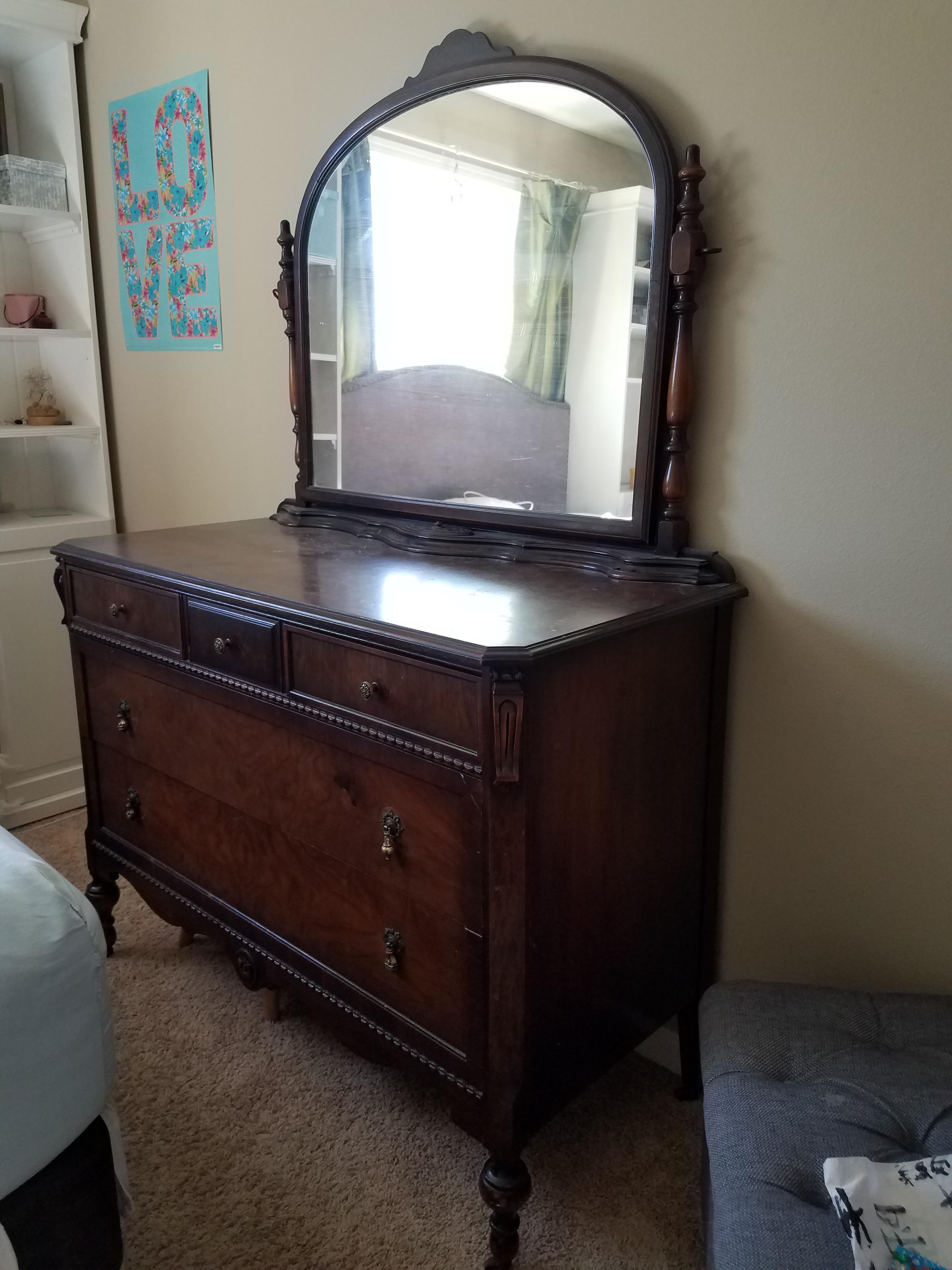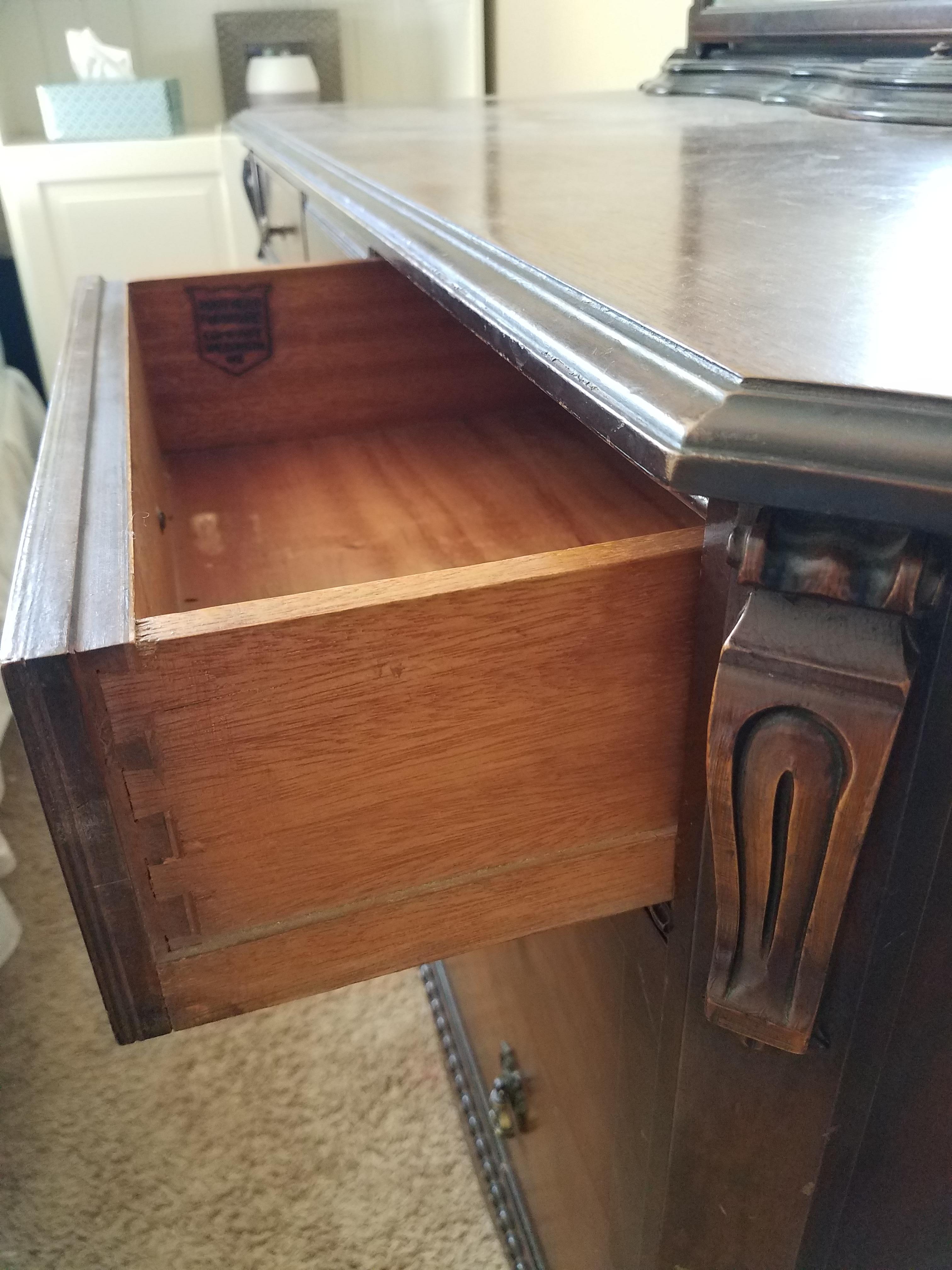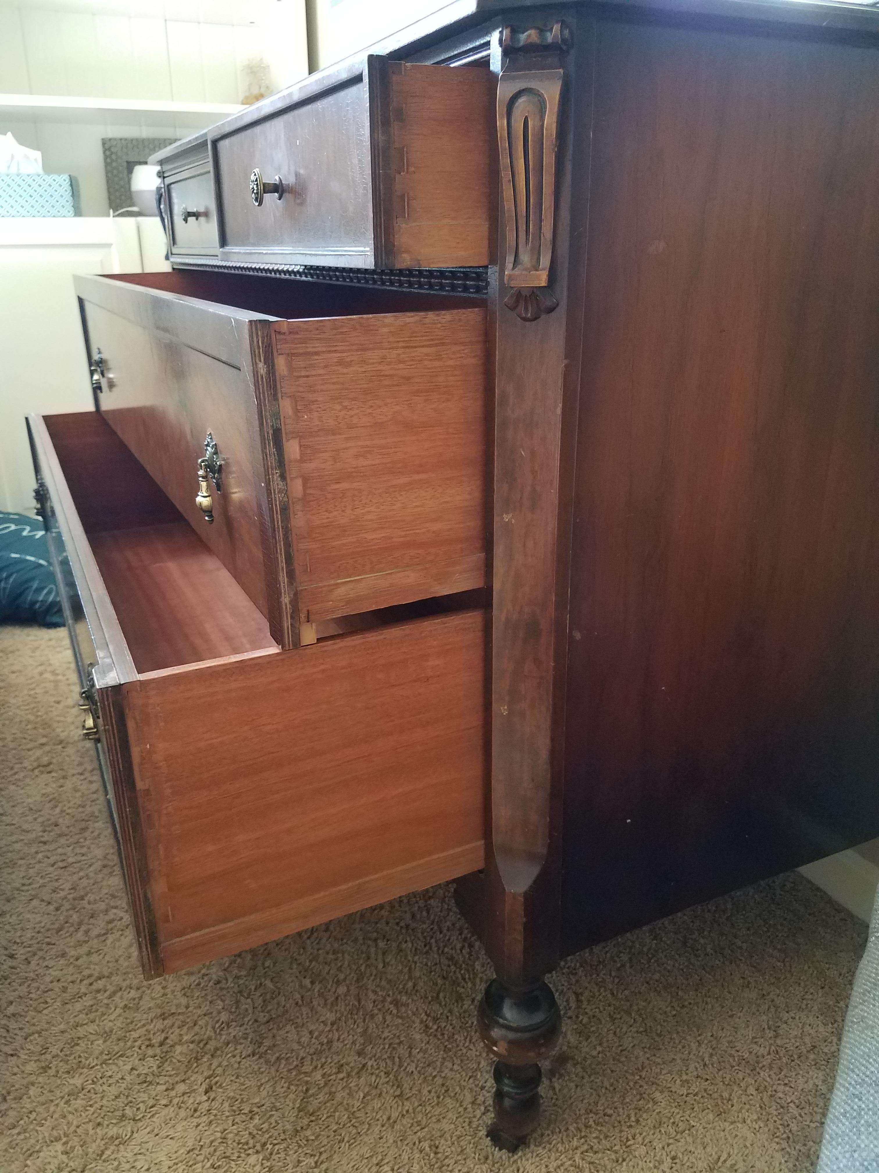 48w x 36h x 22d. Good condition. Everything works really well. Drawers slide smoothly. Casters roll well. Minor surface scratches. Wear marks from drop pulls. No broken parts or missing pieces.