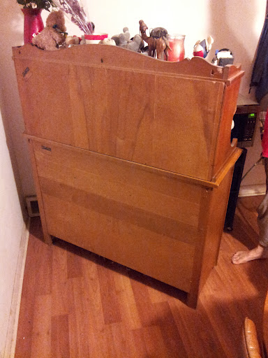 One knob is missing from a draw on the top half but otherwise there isnt any major damage