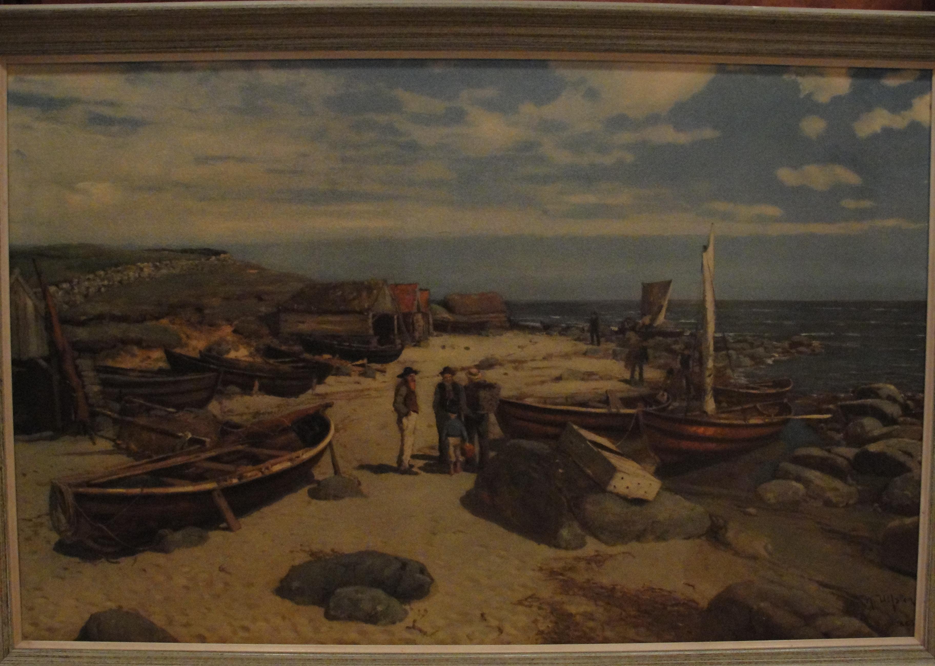 My mother is in the process of clearing out and selling her house. One of the items that she gave us is a painting. She never cared for it much, but my father claimed that it may be valuable. It was bought by my grandfather, but I don't know when ( he died in 1965). The painting is of some fishermen and fishing boats on a rocky, sandy shore. It measures roughly 42"x29" in the frame. The signature at the bottom is