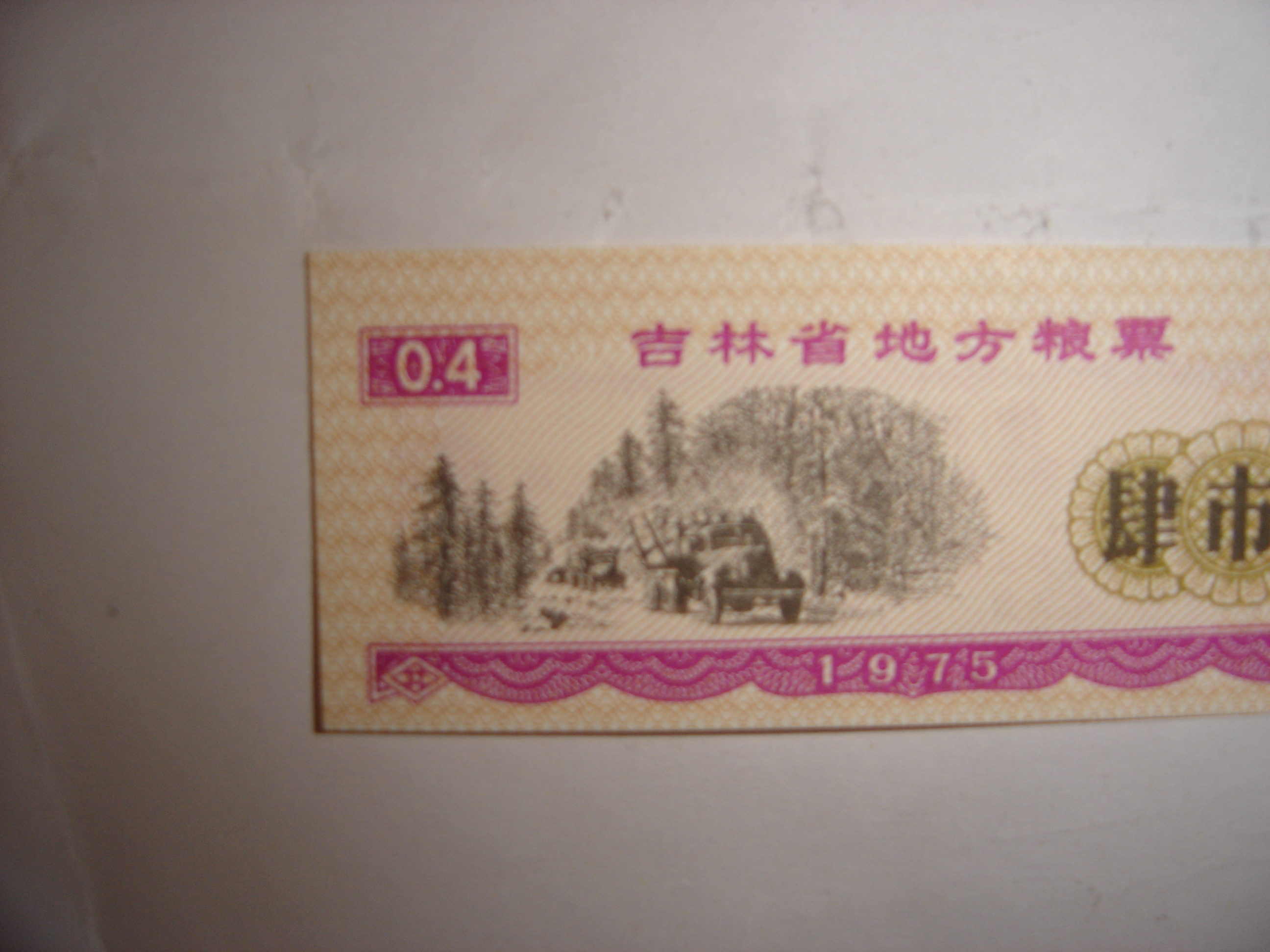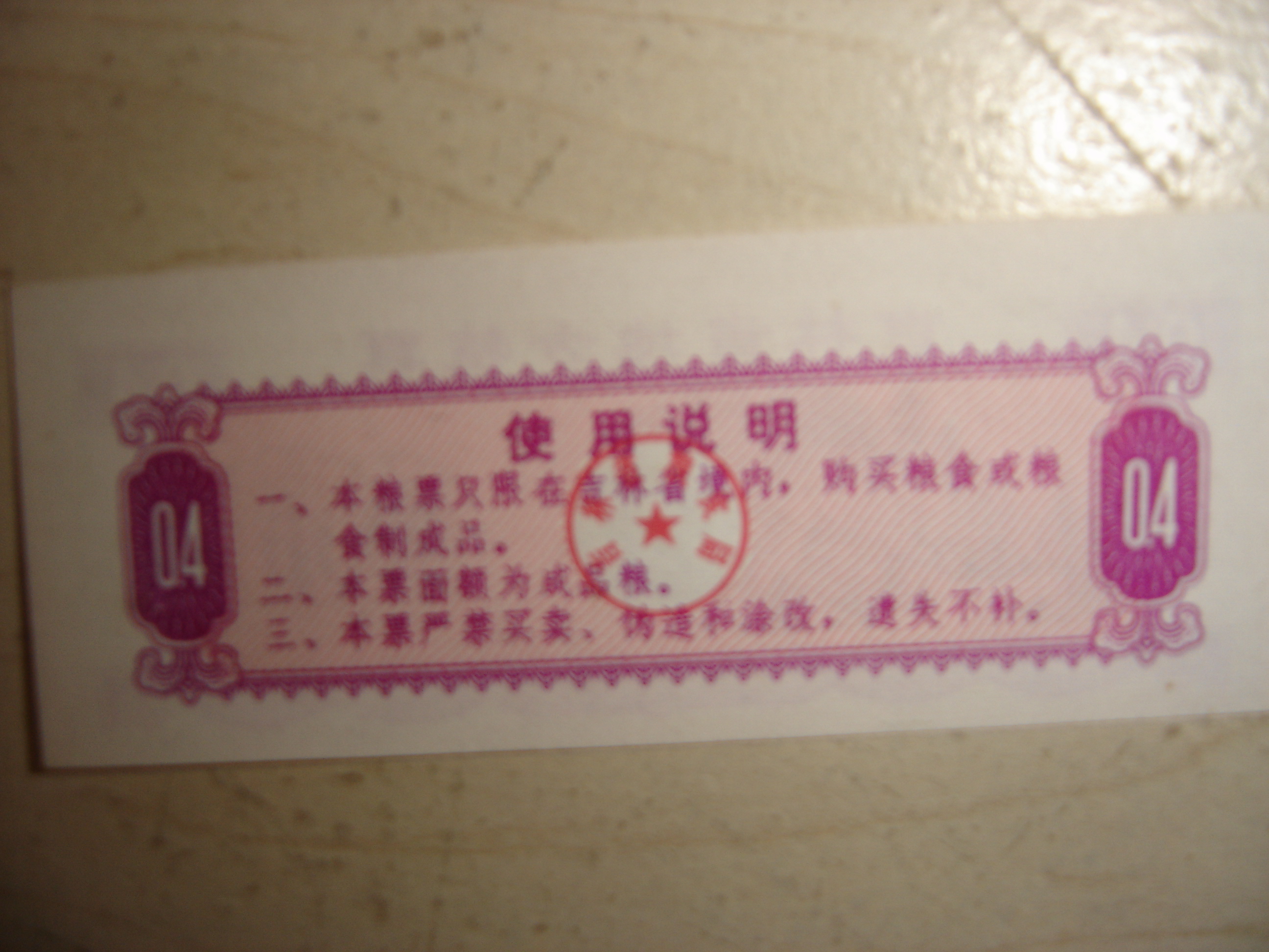 China had severe shortages of basic necessities between 1954 and 1992.  To ensure everyone had access to them (not just the wealthy) the government distributed ration coupons for a wide variety of items.  This is a 1975 ration coupon from the Jilin province good for 4 liang (slightly less than a pound) of rice.