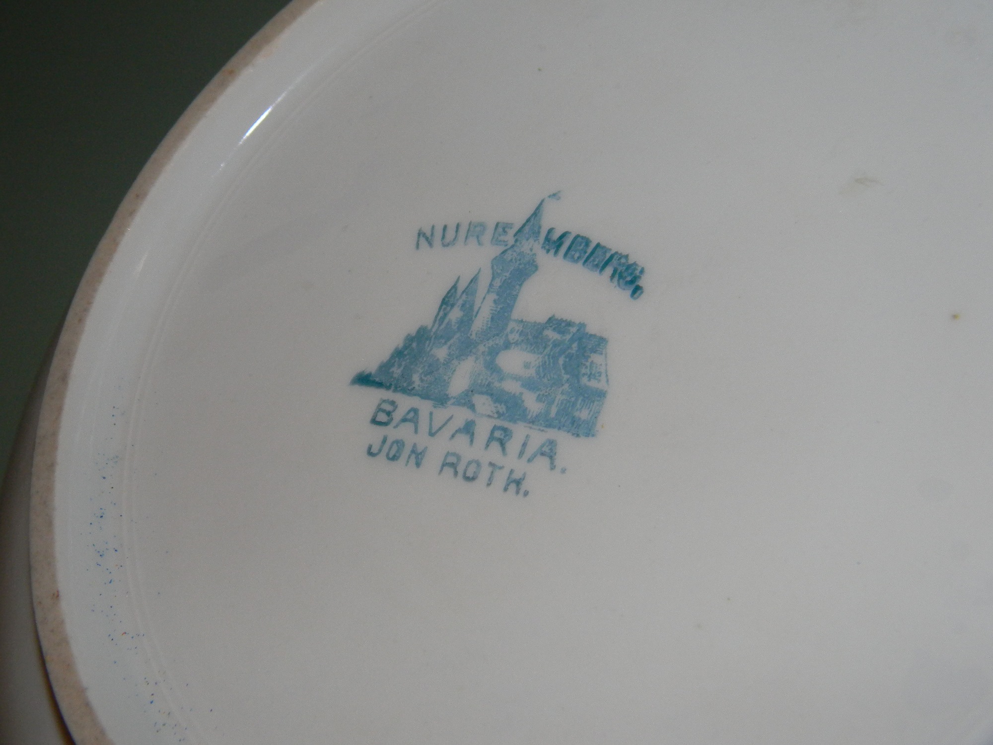I think it is NUREMBERG BAVARIA Jon Roth Large Rose Bowl Perfect