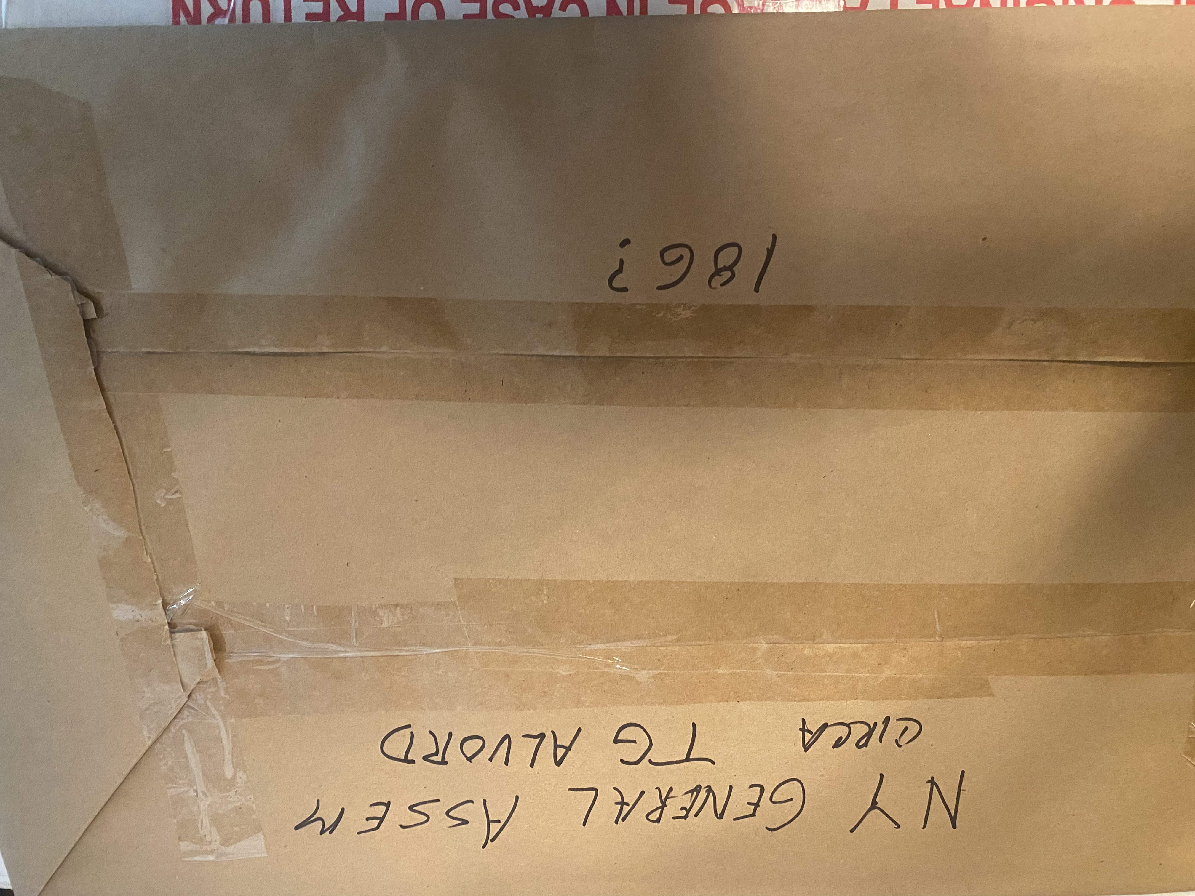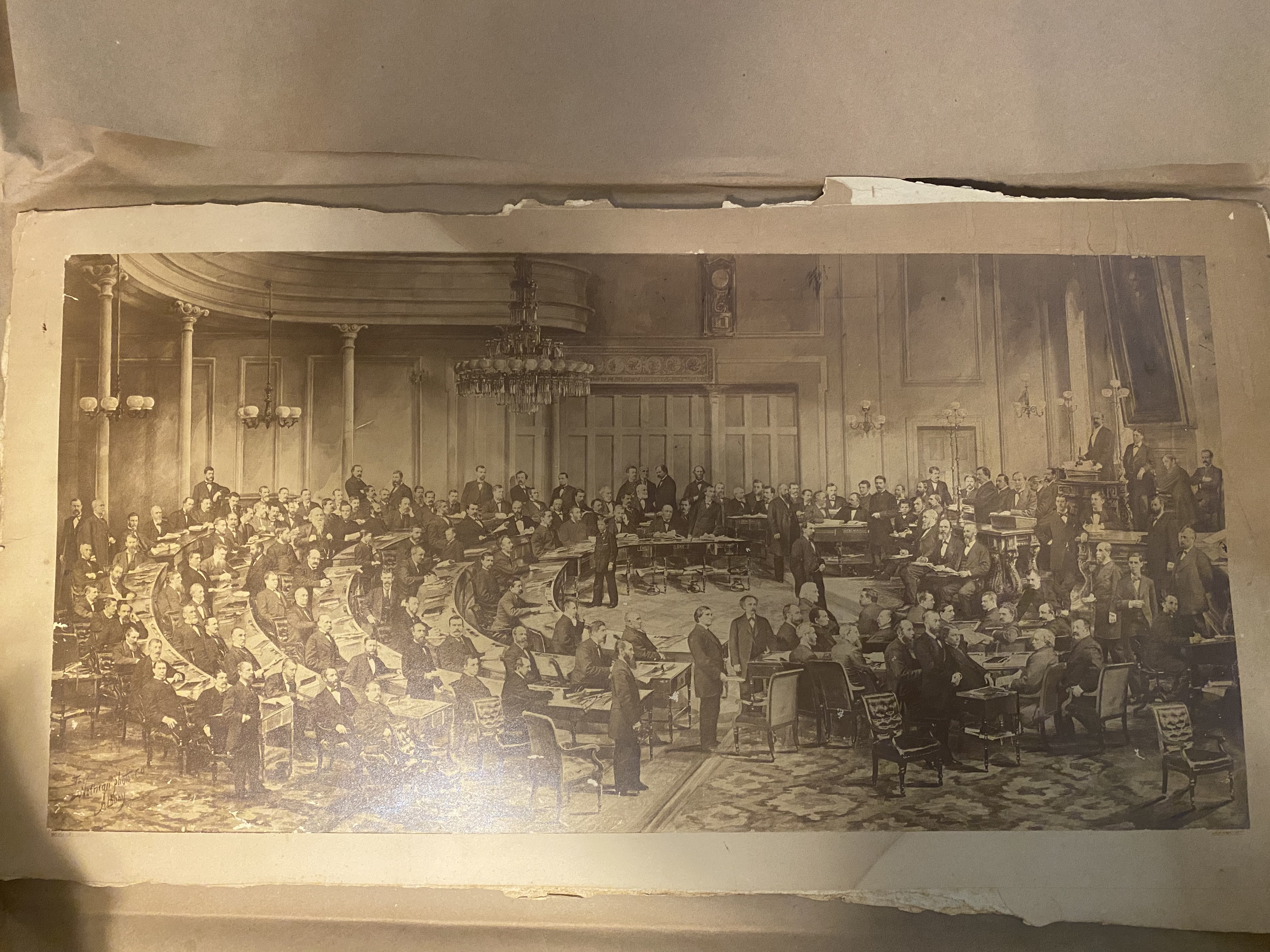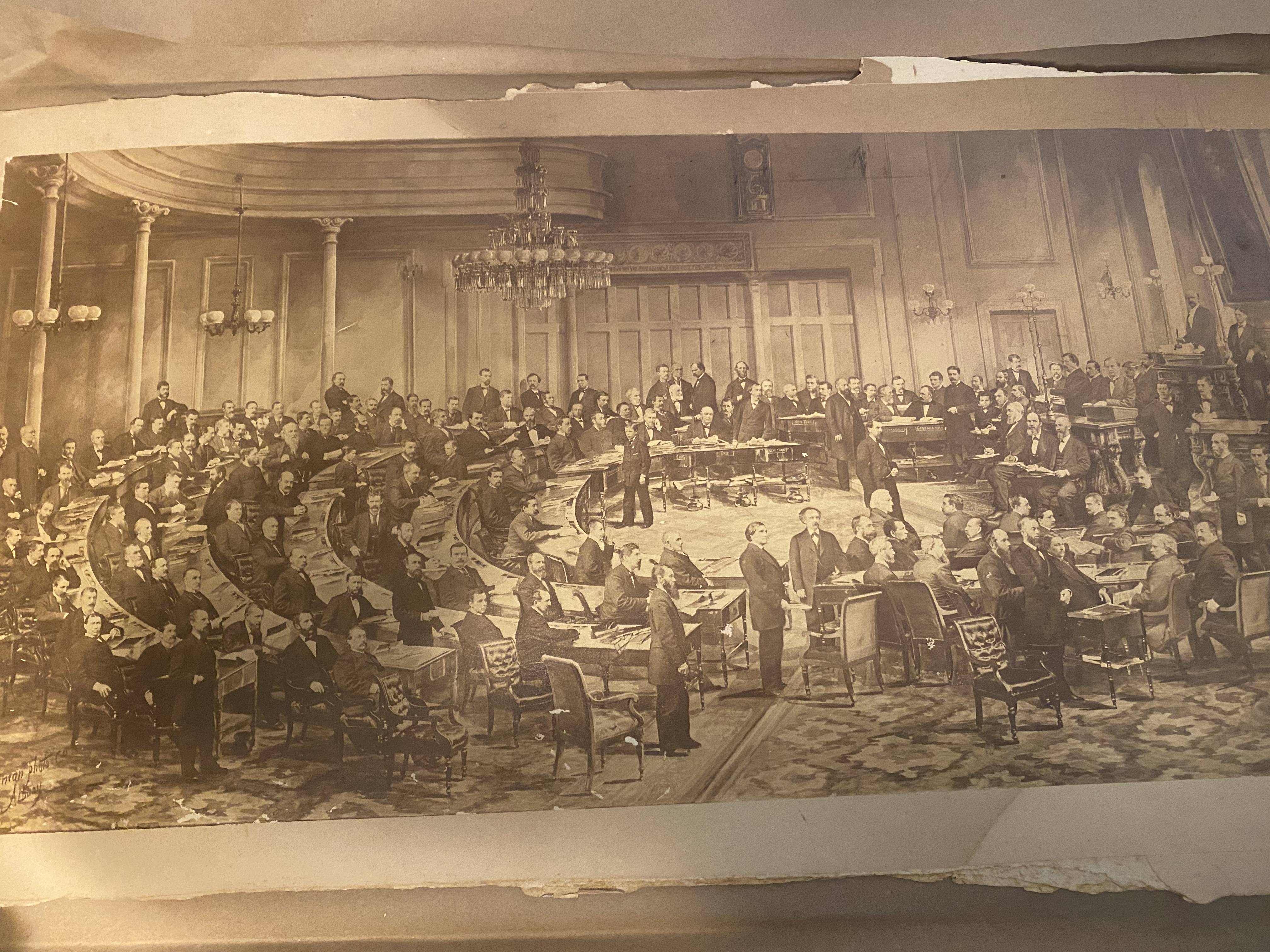 Composite photograph of the NY General Assembly from the 1860s, around the time of TG Alvord. Printed on pressed paper board. Bottom left stamped/impressed ‘Notman Photo, Co.’ Bottom Right impressed ‘Albany, NY.’