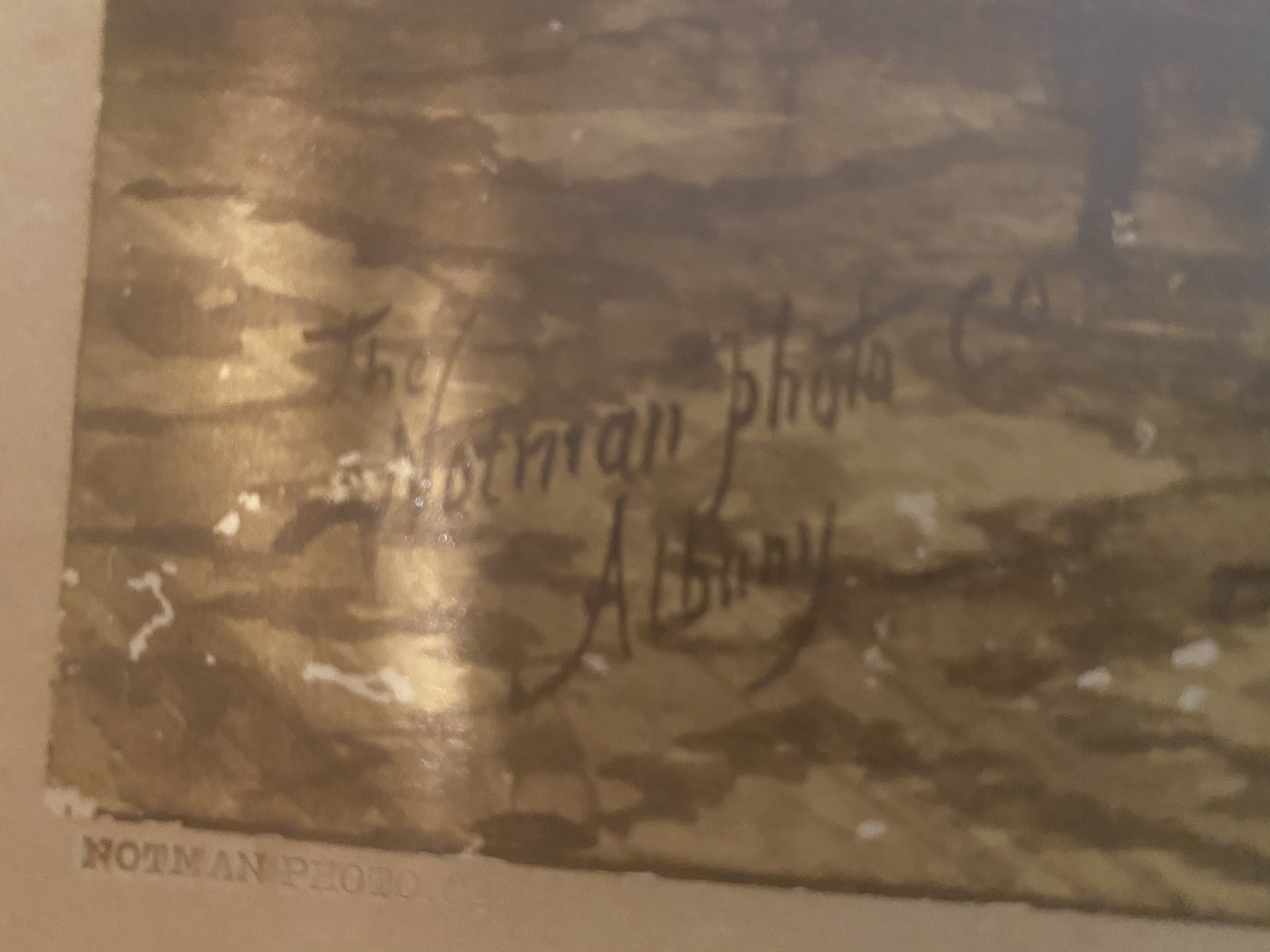 “The Notman Photo Co Albany” on bottom left corner of photo. “Notman Photo, Co.” impressed immediately below photograph in same corner. Bottom left corner I pressed “Albany, N.Y.”