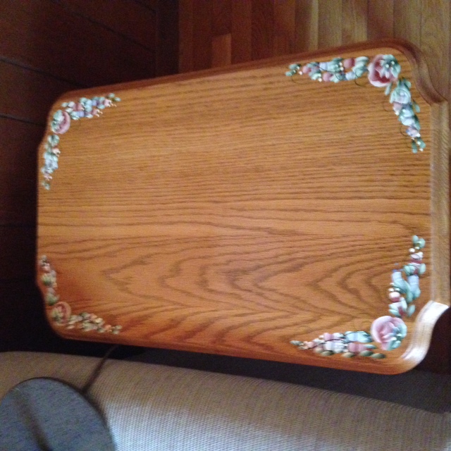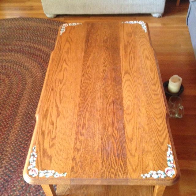 Hand painted and signed solid oak coffee table with drawer.