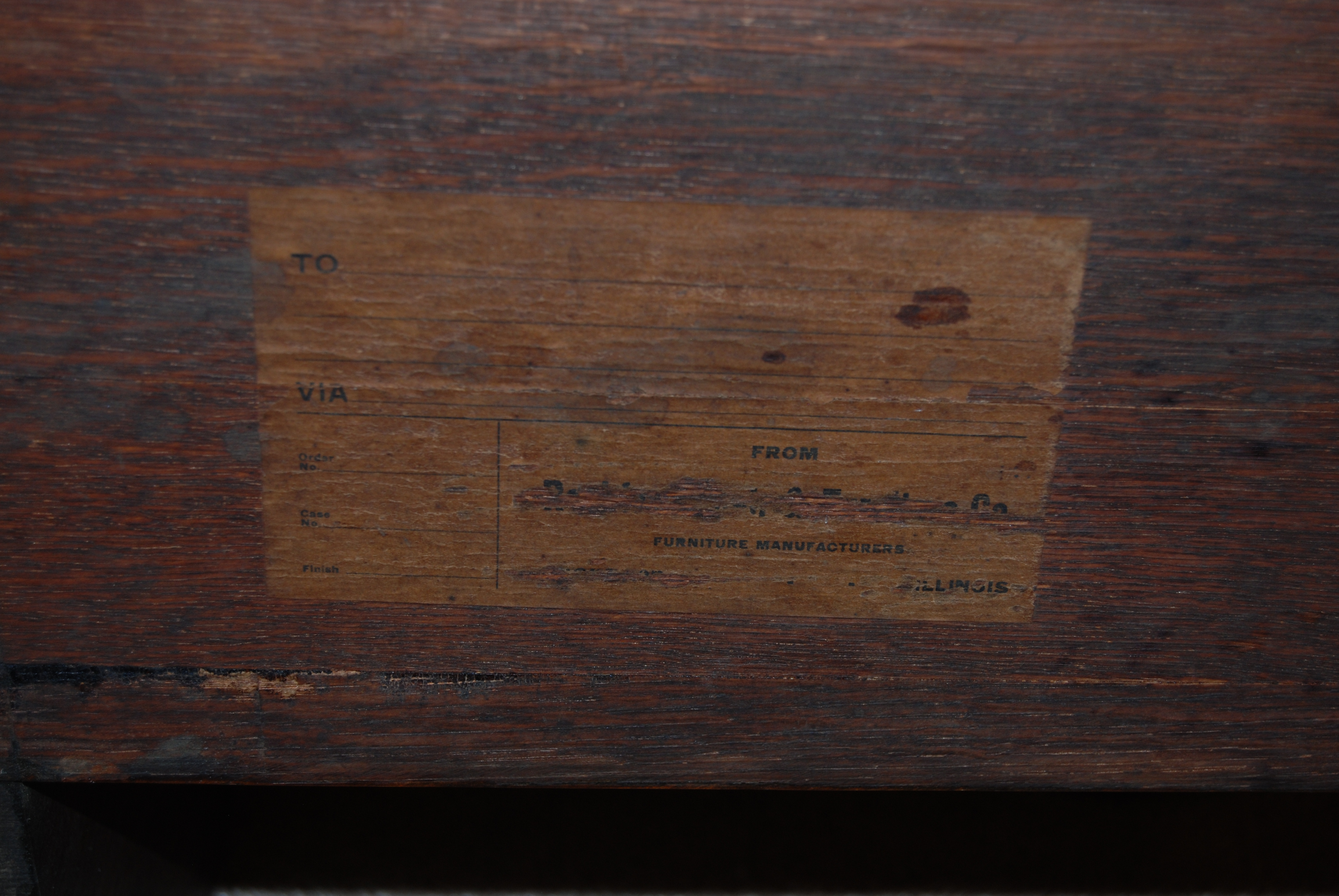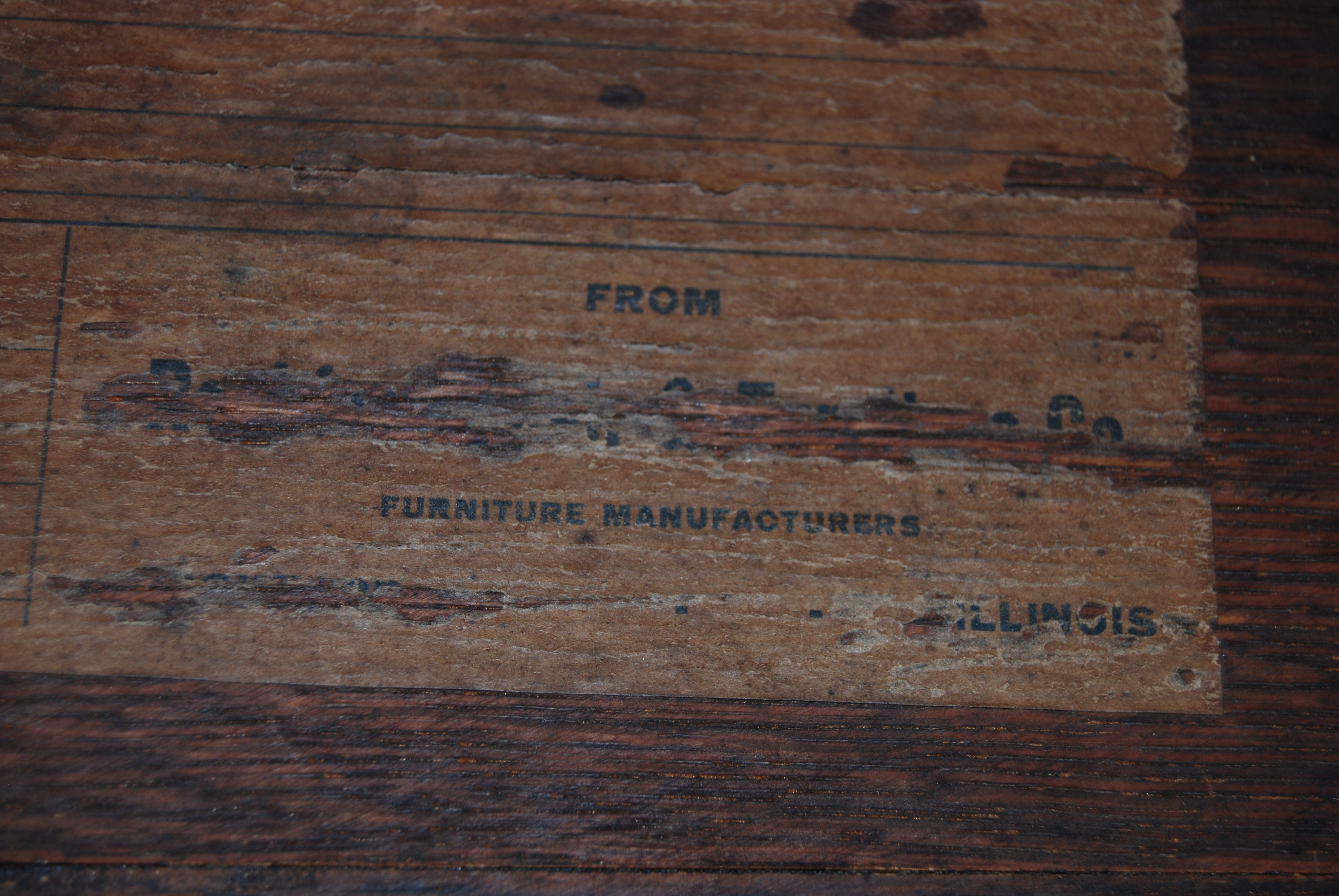 Oak Secretary Desk - with the manufacturer label is hard to discern but I could make out that it was clearly from "Rockford _____ Furniture Co." of Rockford, Illinois. The Second word in the manufacturer's me I could not make out however....but I can see several portions of the lettering (included above...)