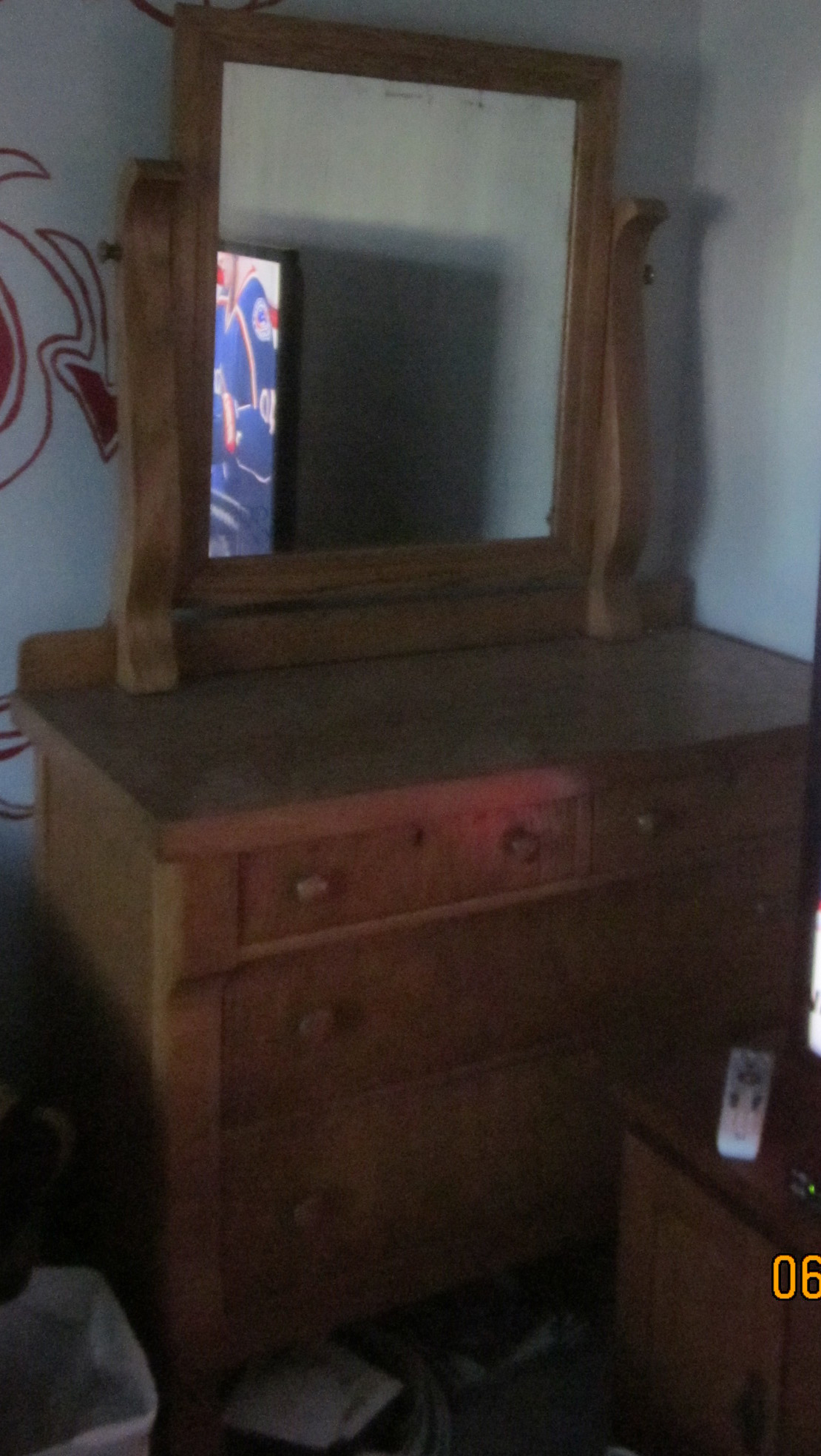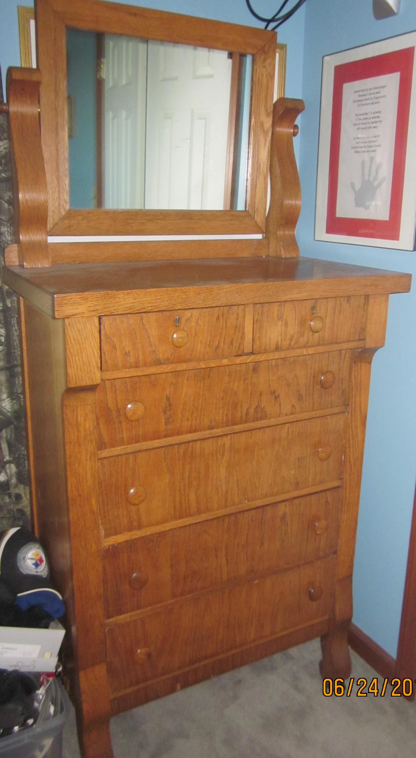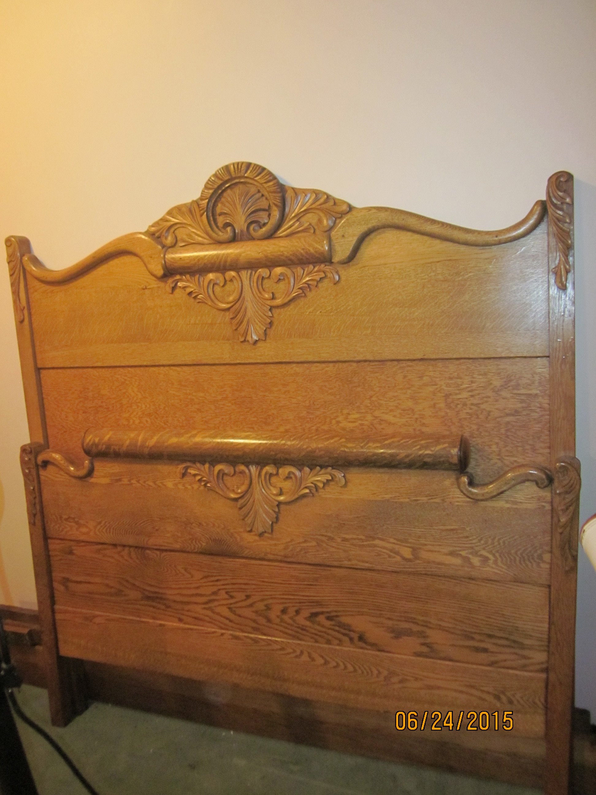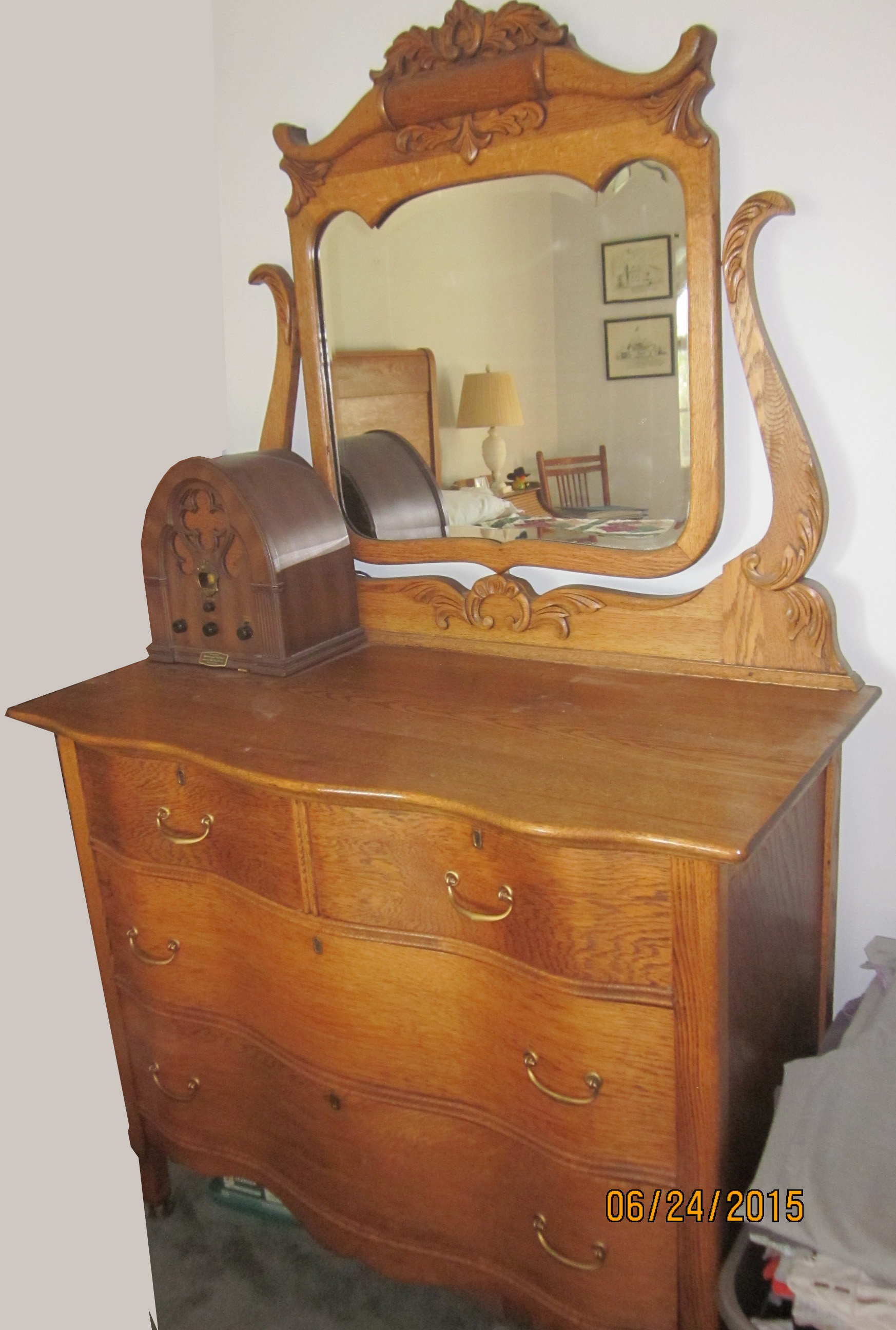 2 antique oak beds and 3 oak dressers