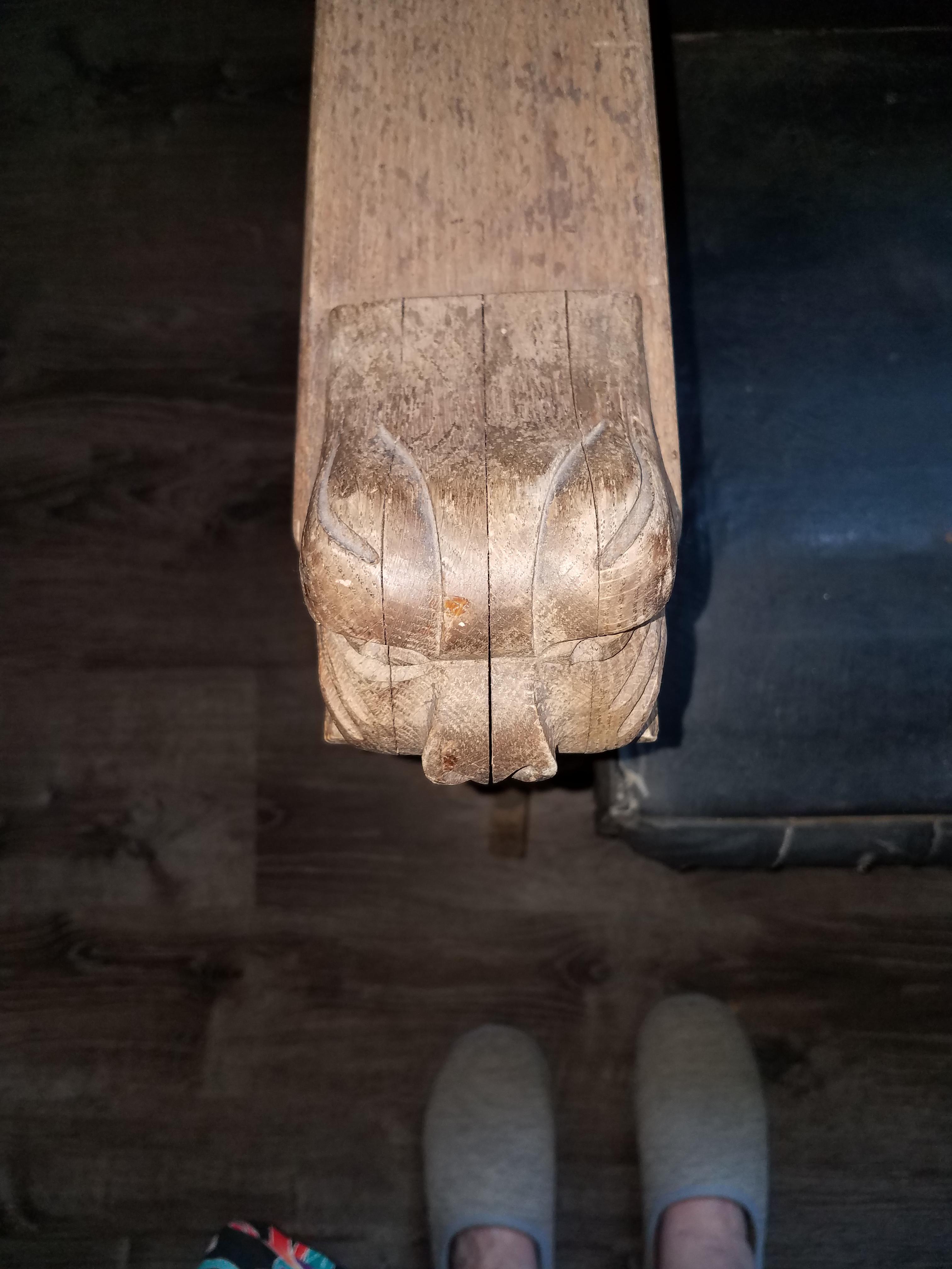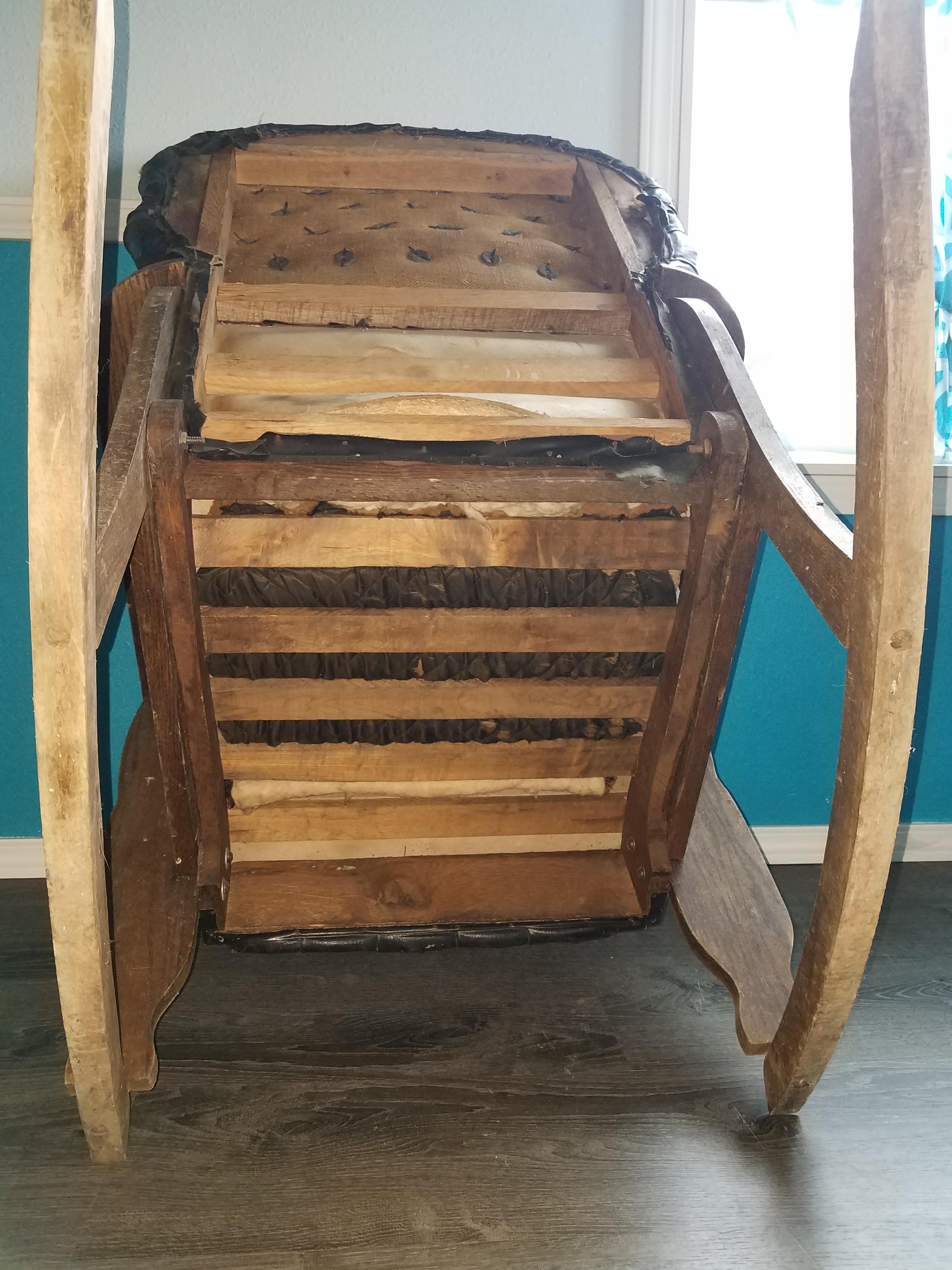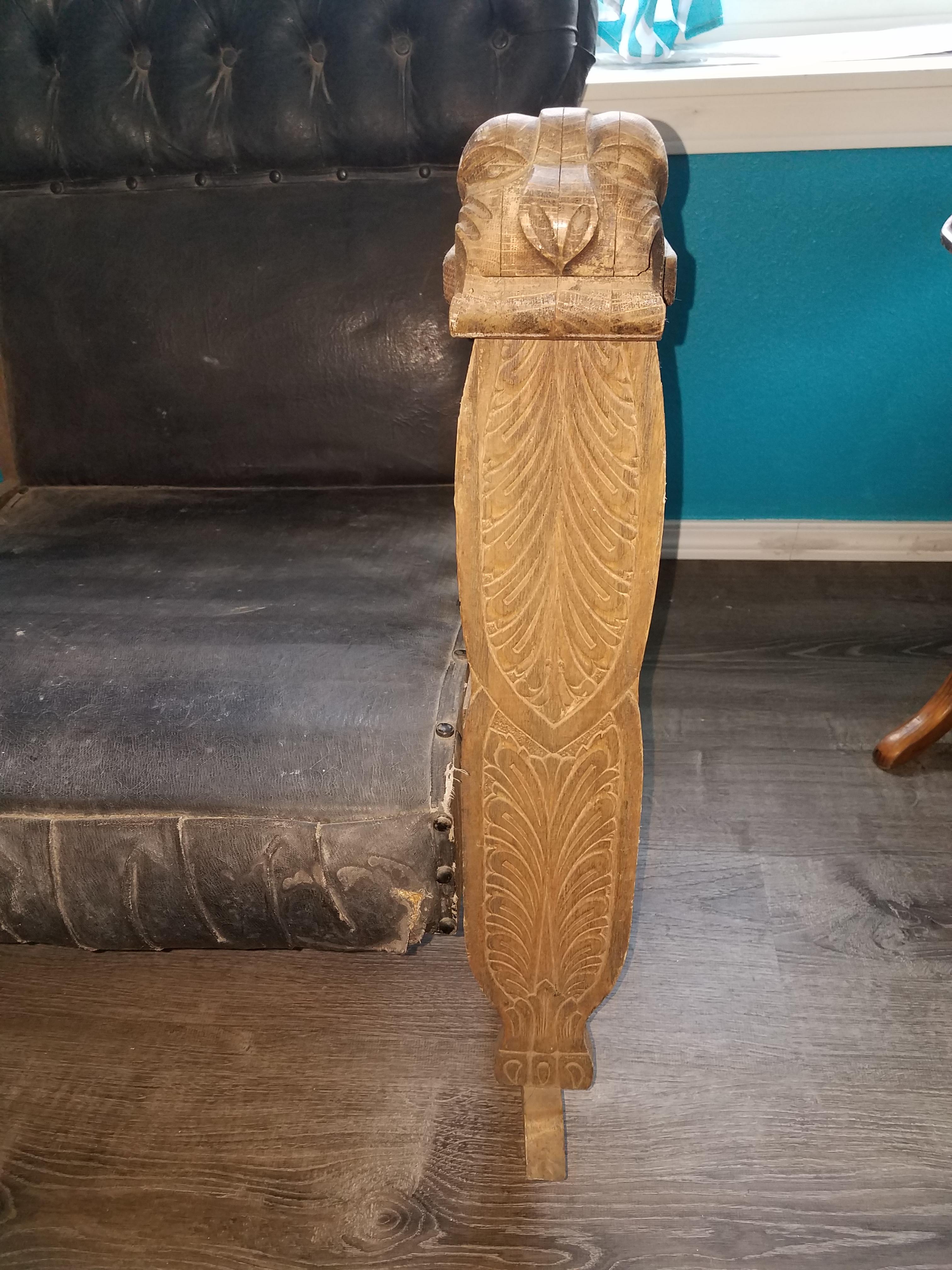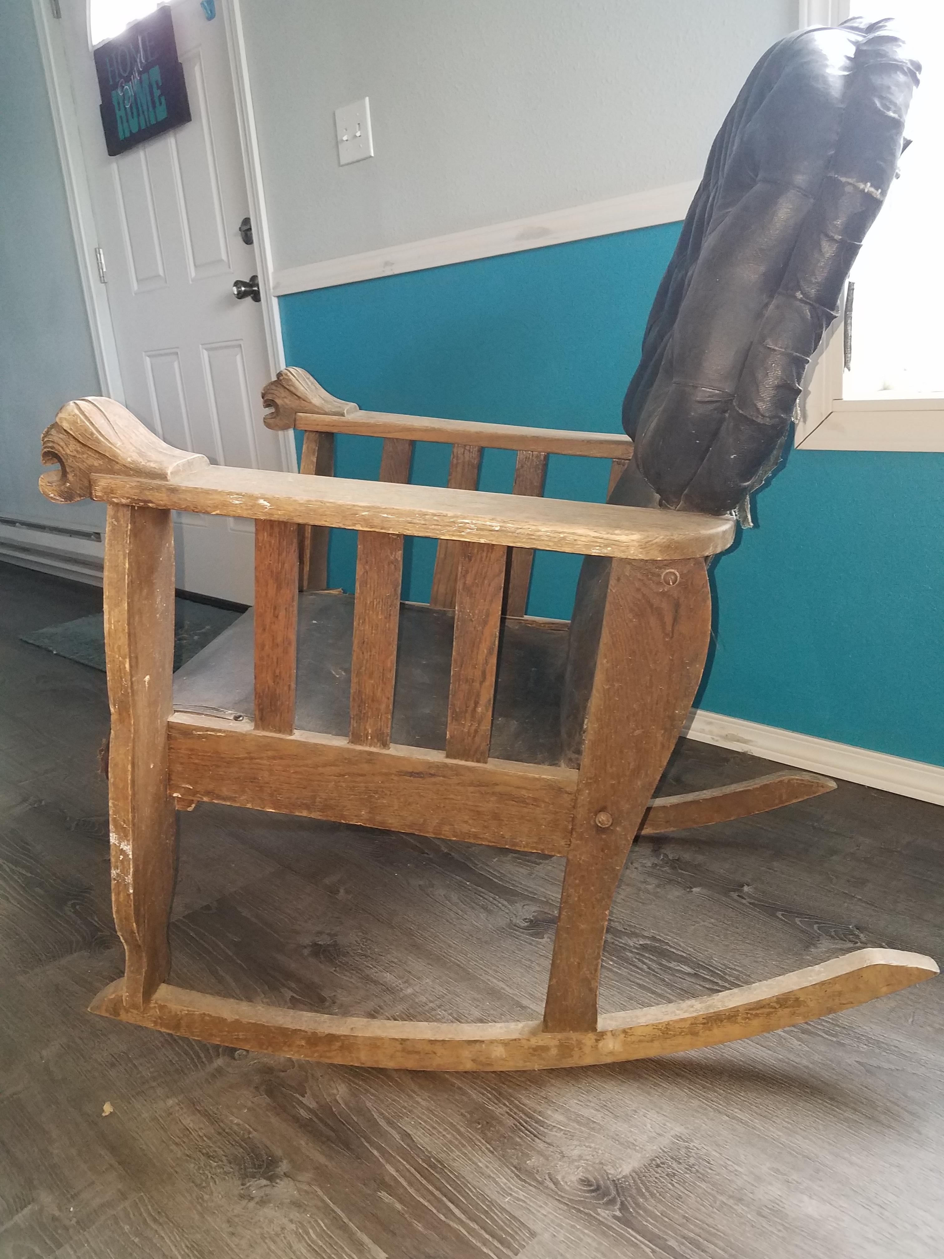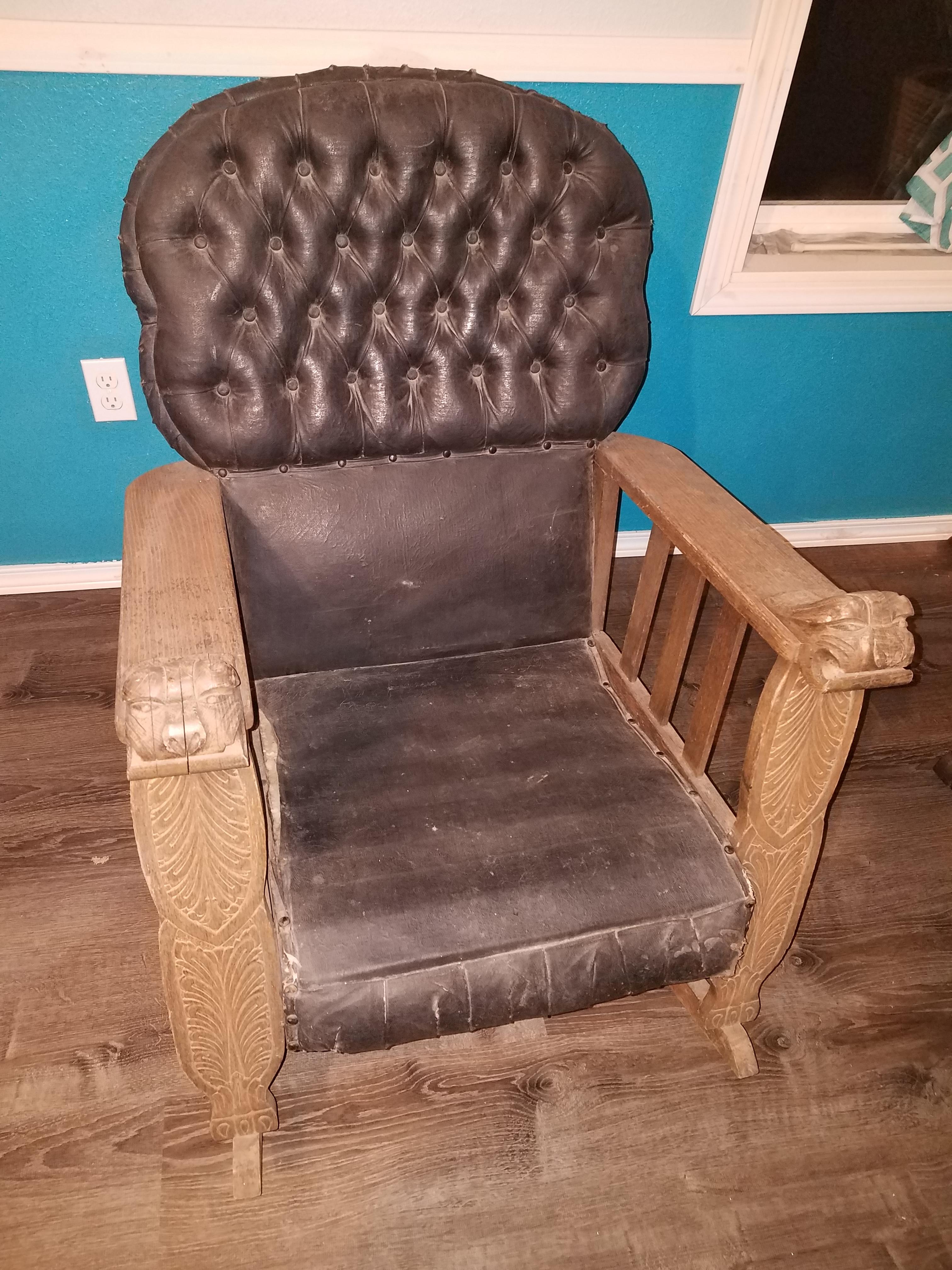 Oak & Leather Rocking Chair with Lion Armrests