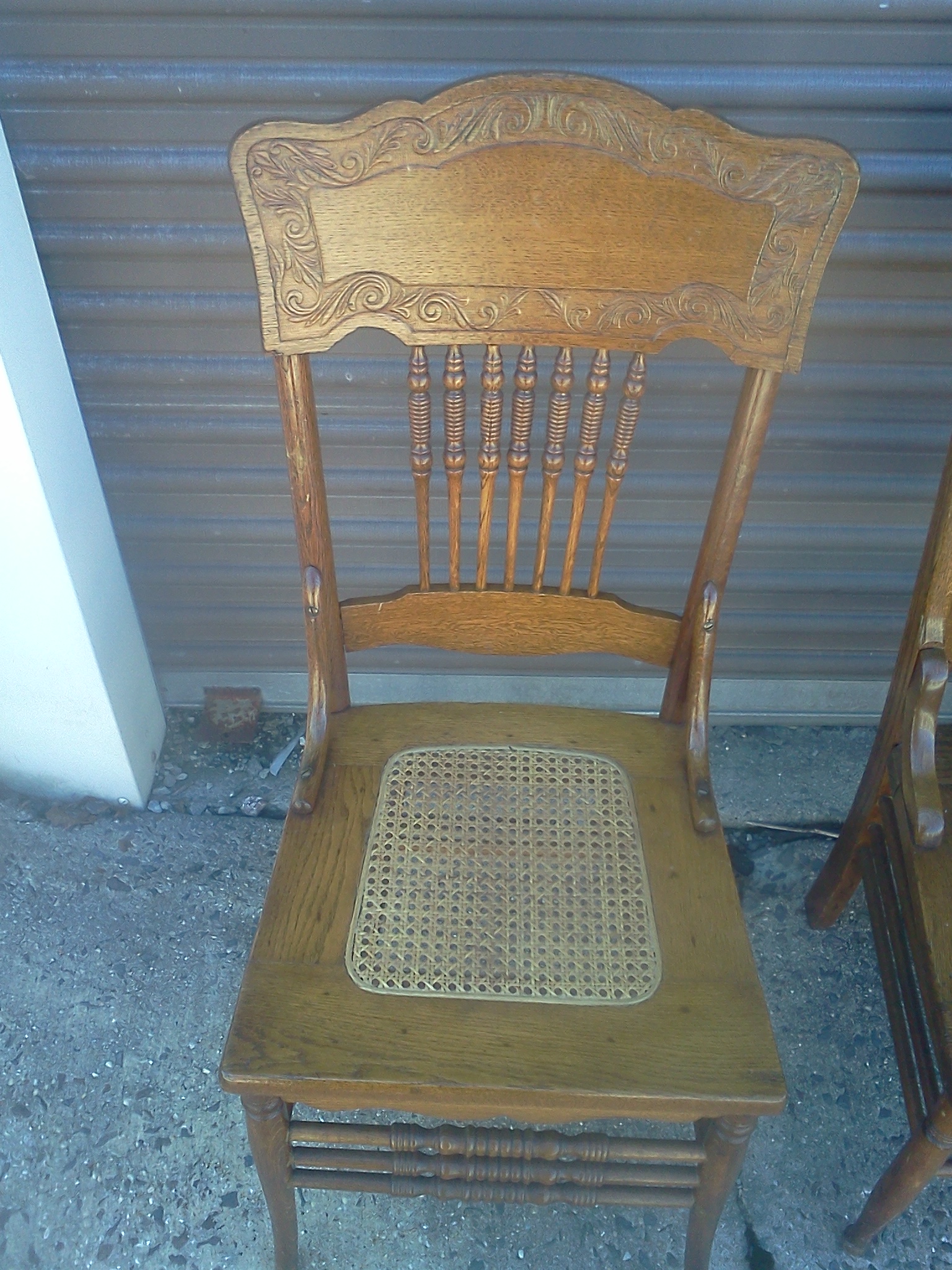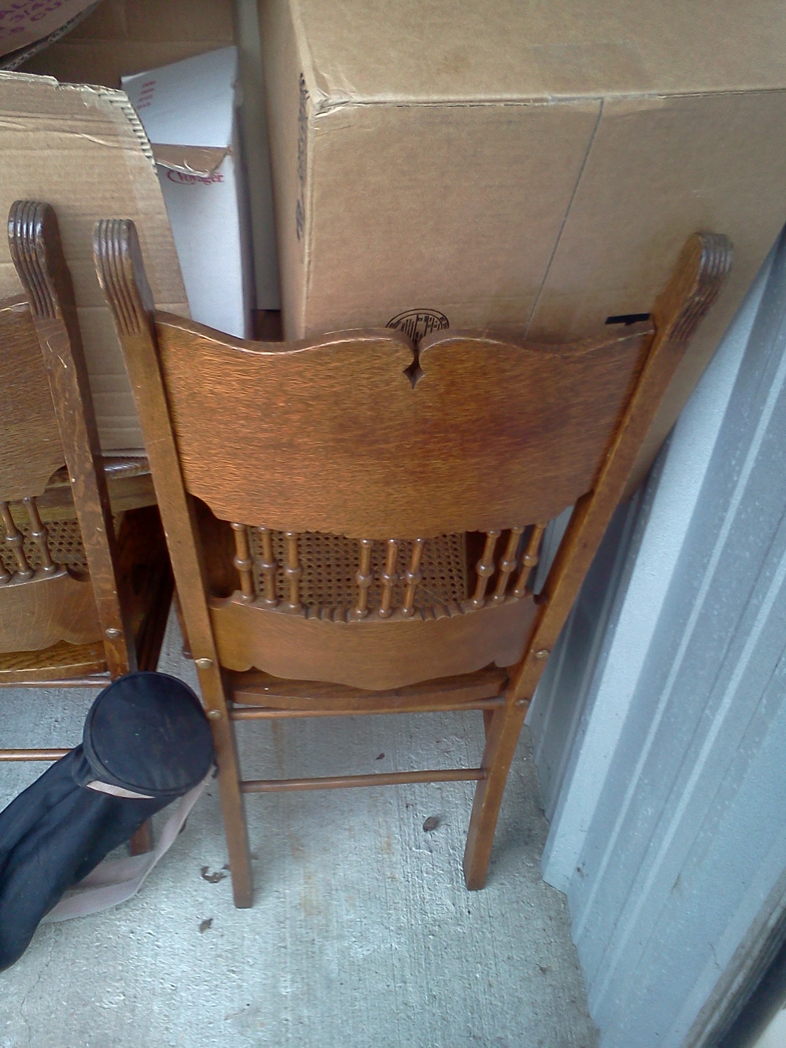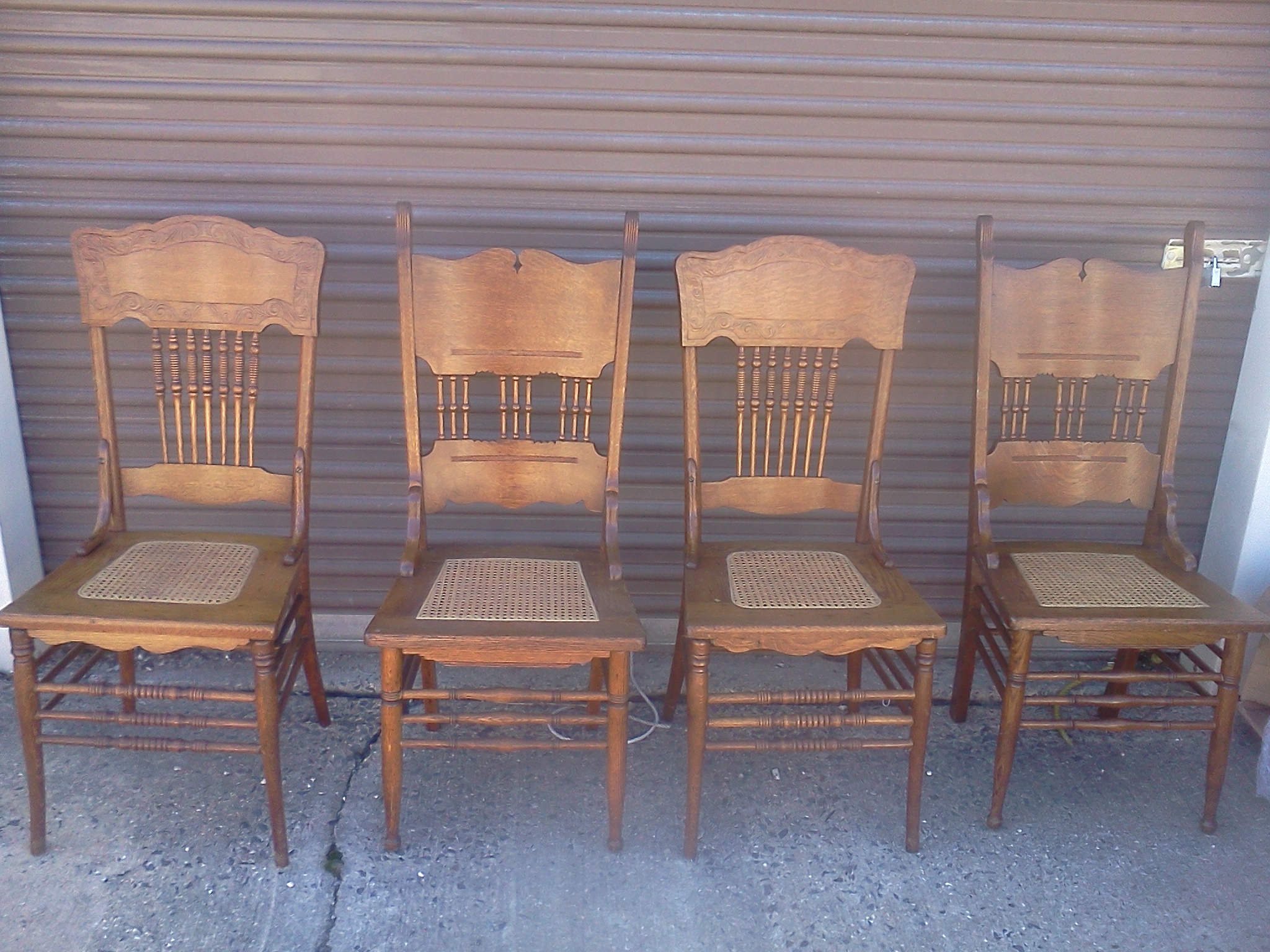 Oval, oak dinning room table. Is around 40 years old and comes with two leafs and four chairs.