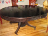 This table has been passed down for at least 4 generations. It has also been lent and moved many times, hence the used condition (chips, burnt spots, small broken parts). It has been painted and varnished. We plan on having it refurbished and I expect it will cost a lot...