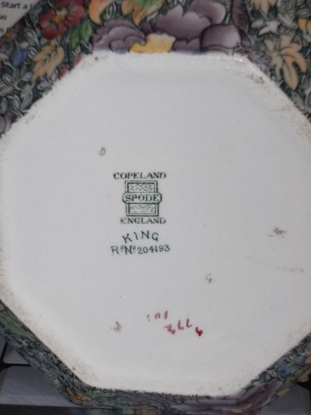 Copeland Spode Stamp on base. Allos "KING" and Rgd No 204193