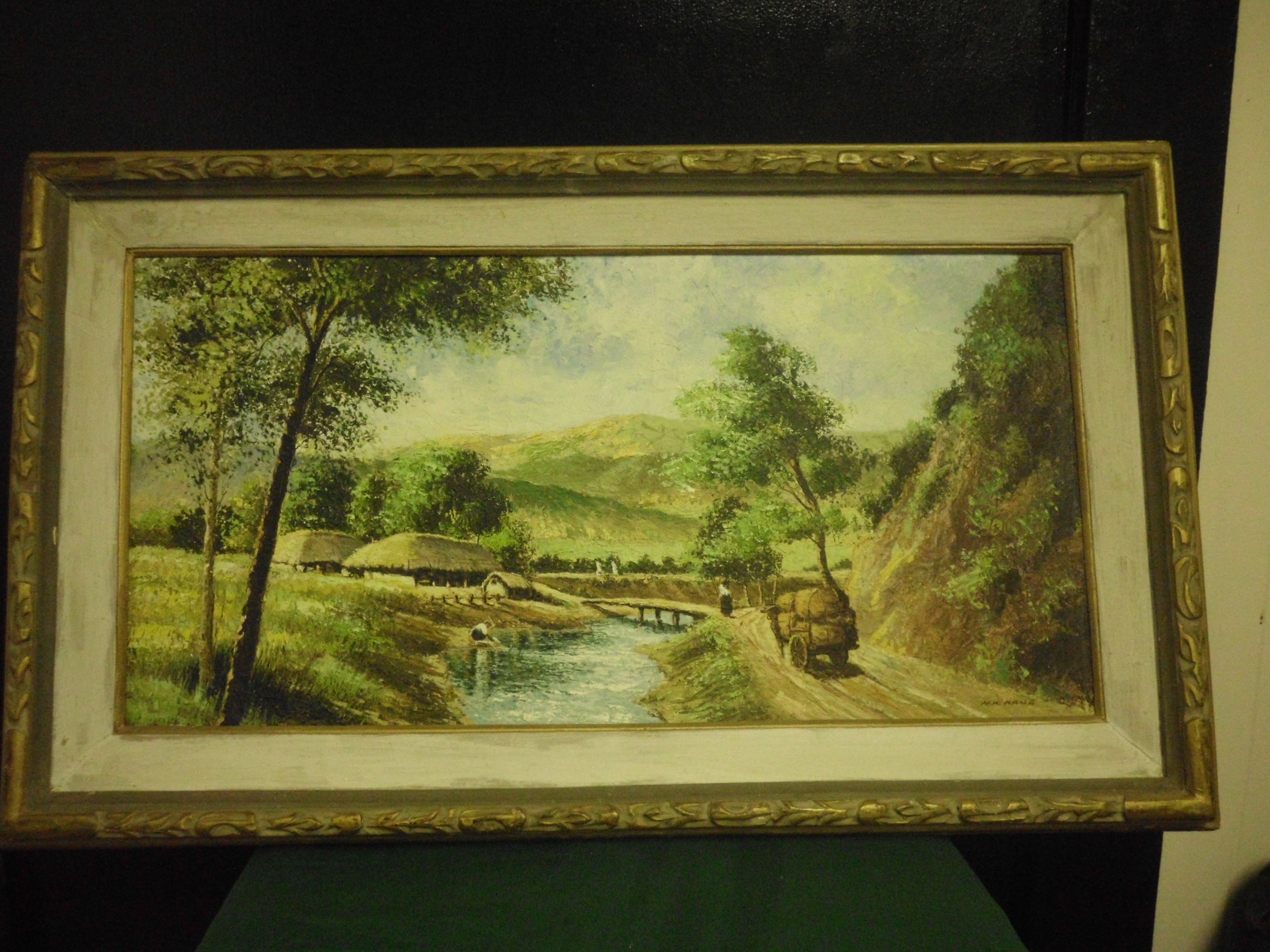 I bought this painting along with a few other when I bought my first house.  It was a large house I was trying to open as a group home.  I wanted alot of different art and nice pictures on the wall for the residents.  Will the group home fell through in 2000 and I was left with a number of different wall hangings.  (I will need help with these as well.  I could not find anything about the signature.  H.K. Kang or M.K. Kang or M.N. Kang.