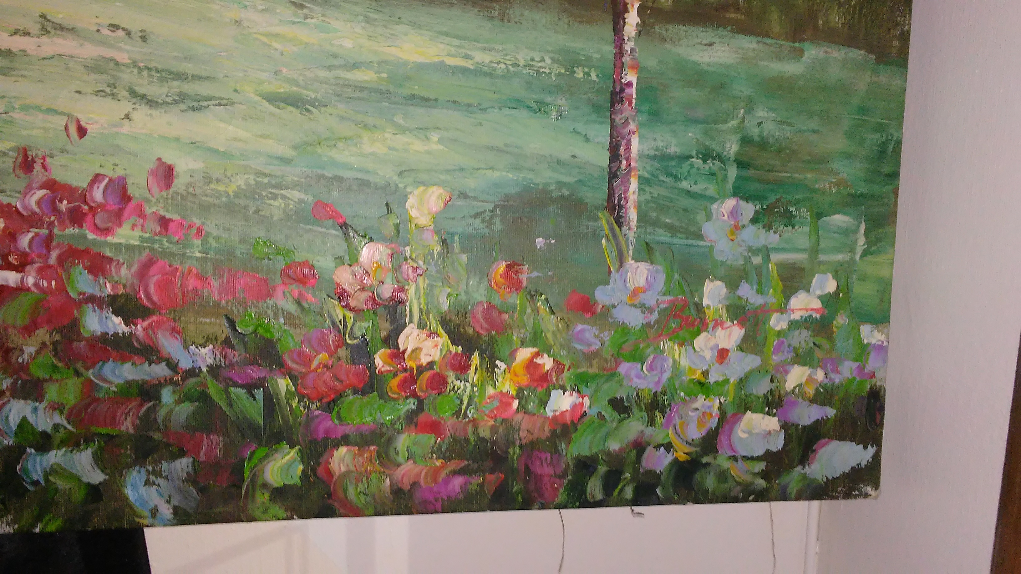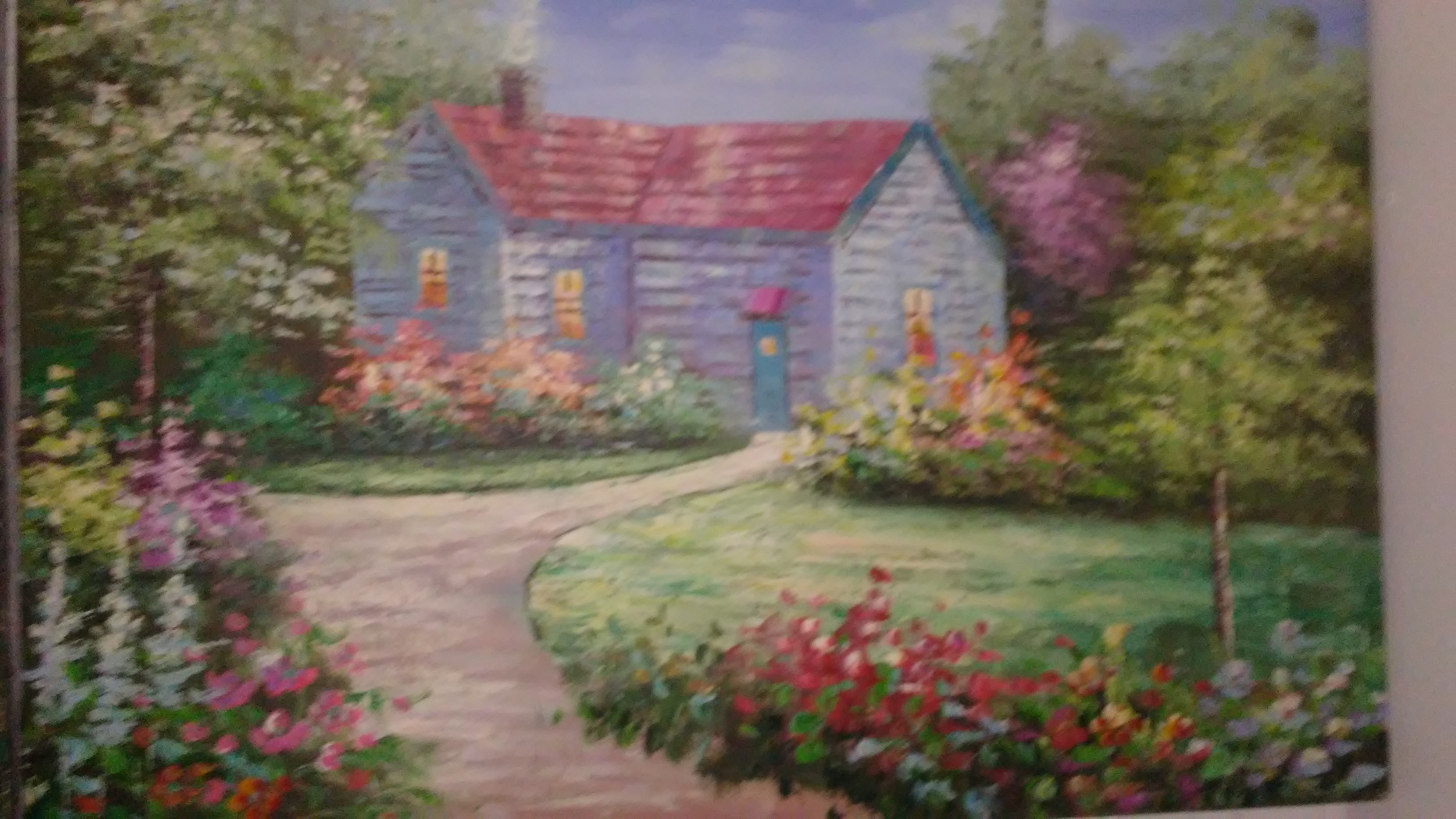 It looks vintage has a cabin in a flowery meadow ?Burnett signed I. Red in right bottom corner