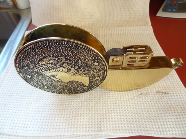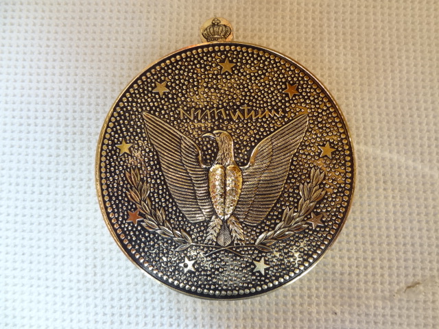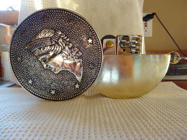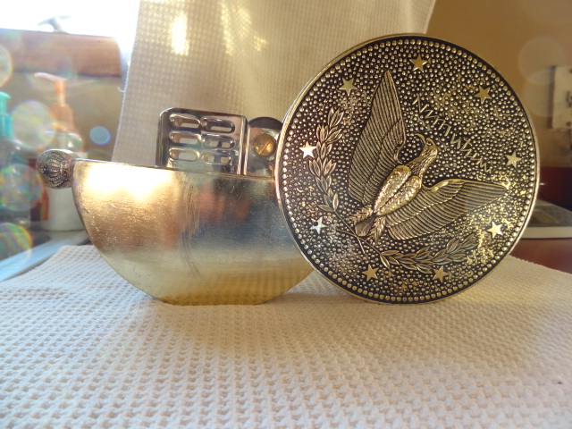 we think that it is an oil lamp of some kind. it says Japan on the nob of it. has strange writing on the side possibly german? has an eagle on one side and a face of a woman on the other. we really just want to know what its worth