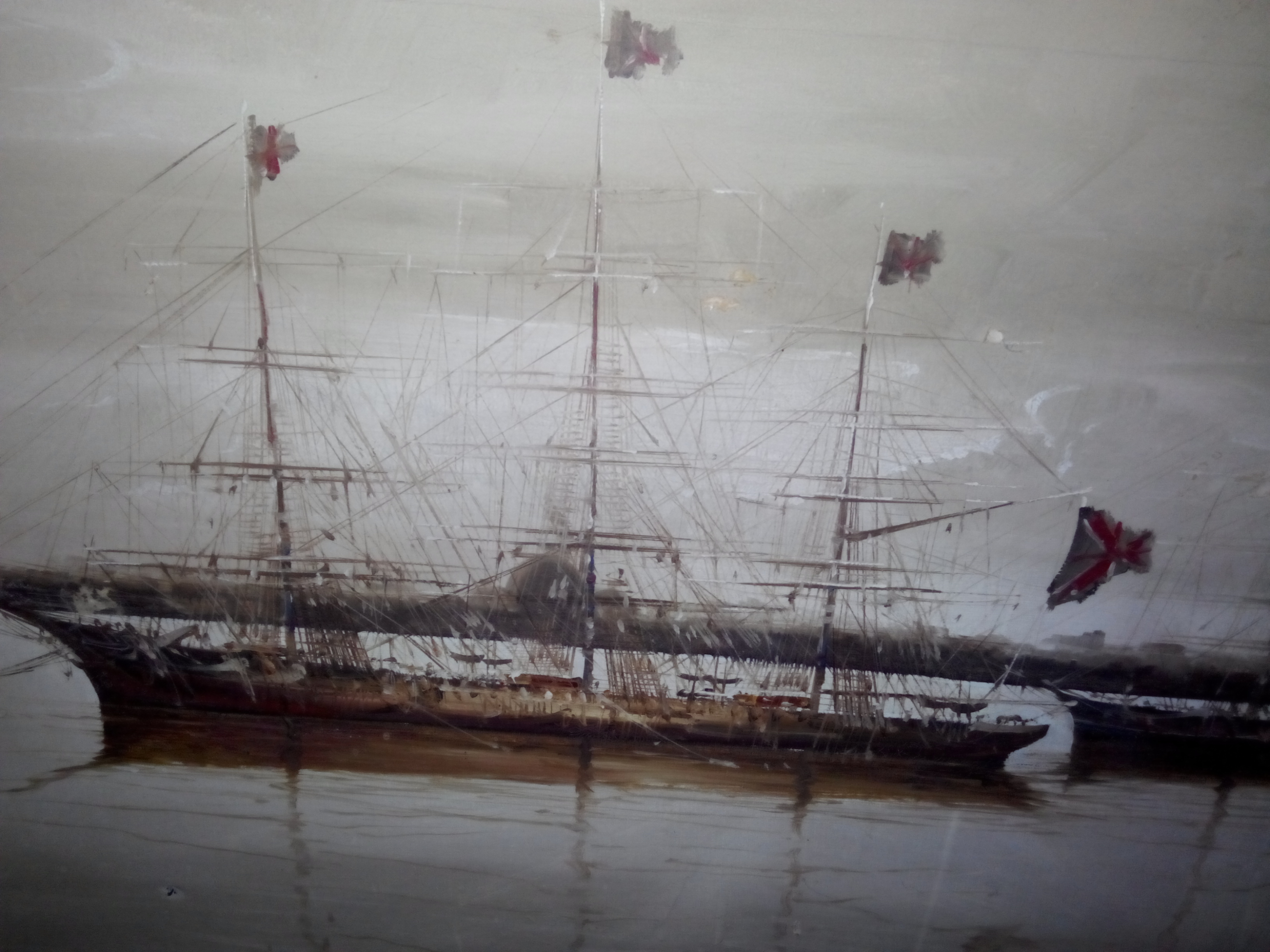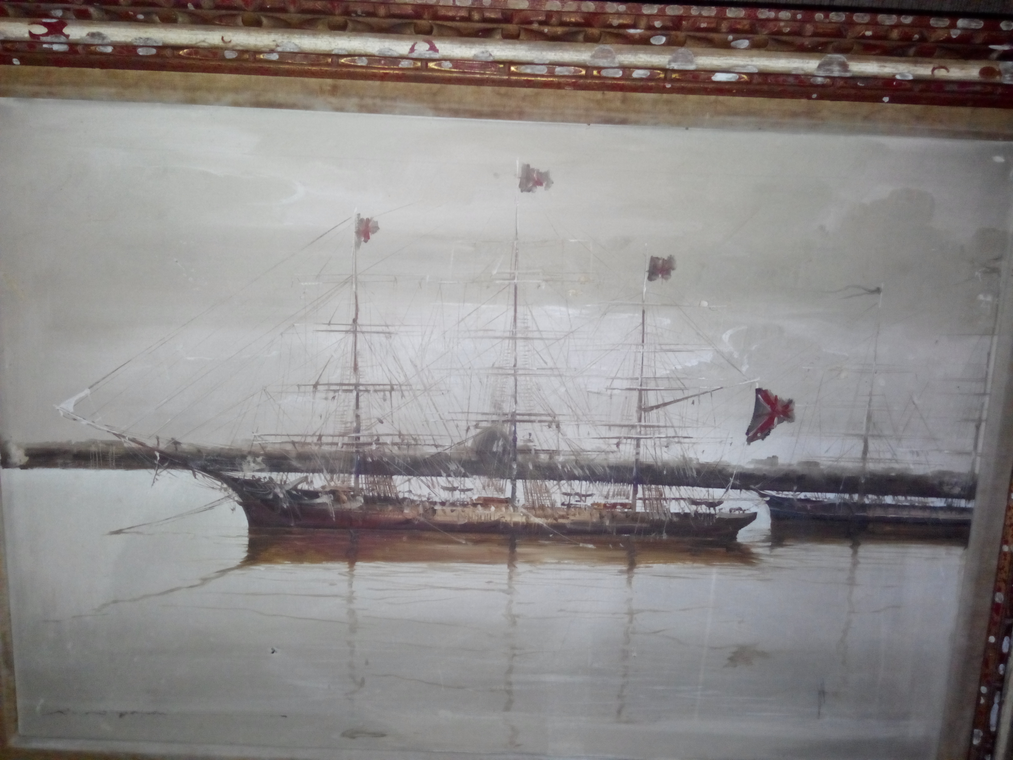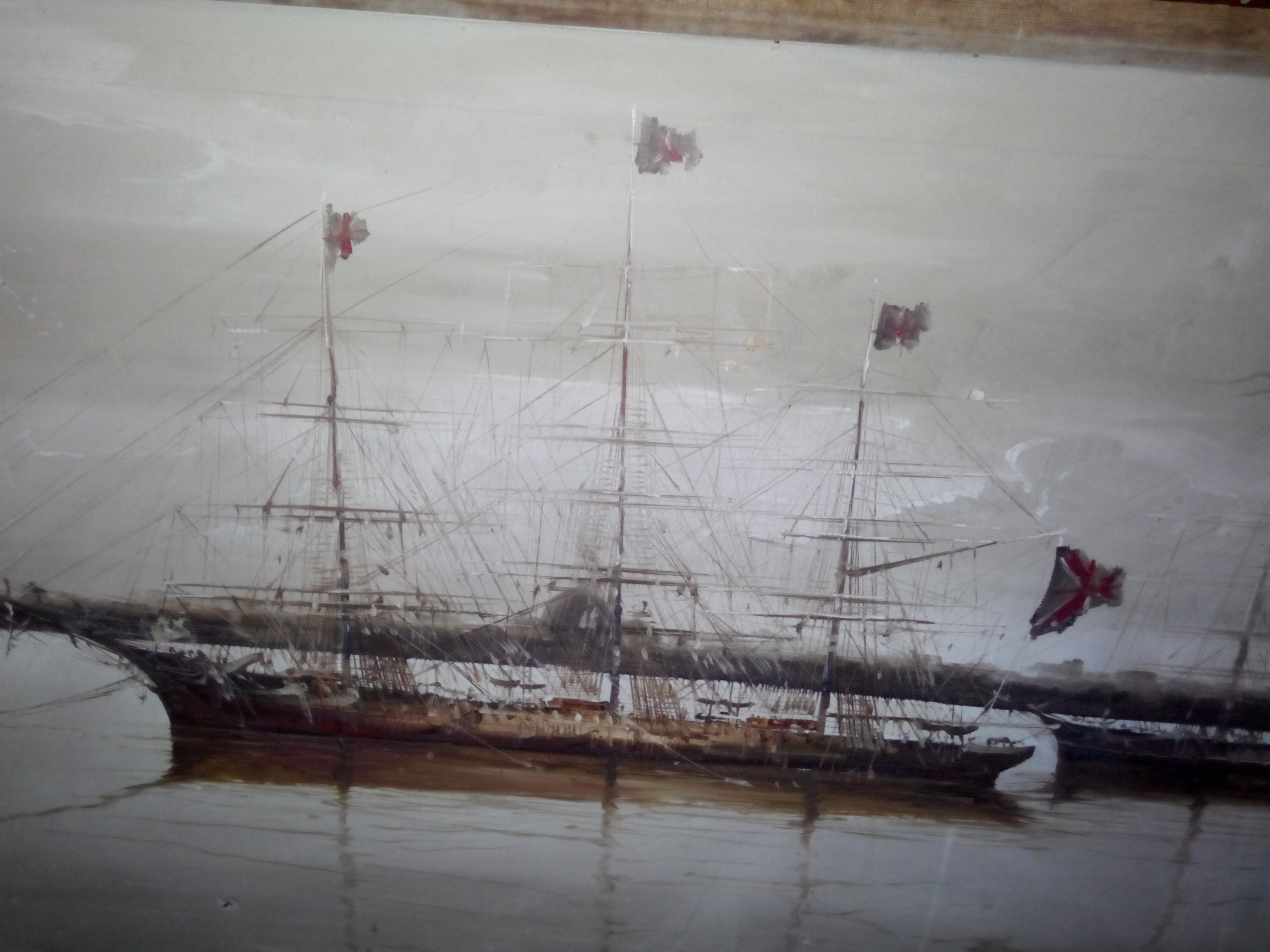An Oil Painting of British Ships which was purchased about thirty years ago in the Bahamas. A signature at the bottom left, unfamiliar.