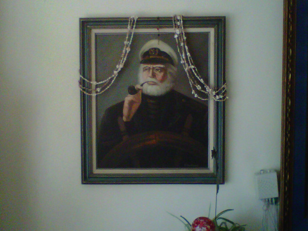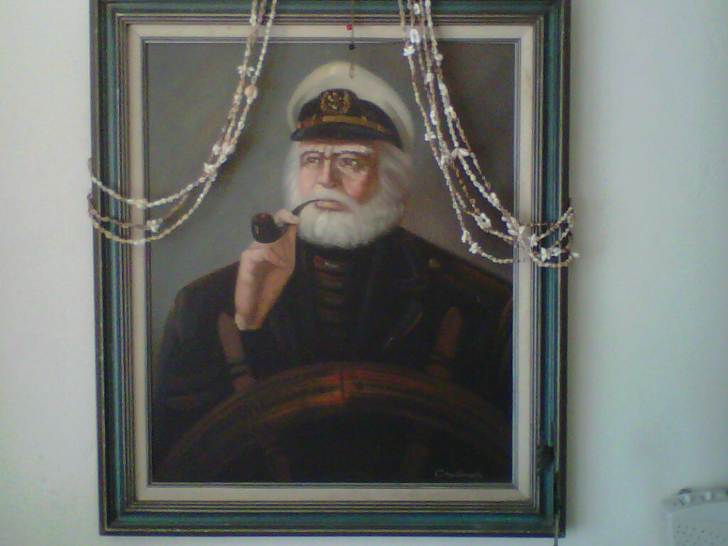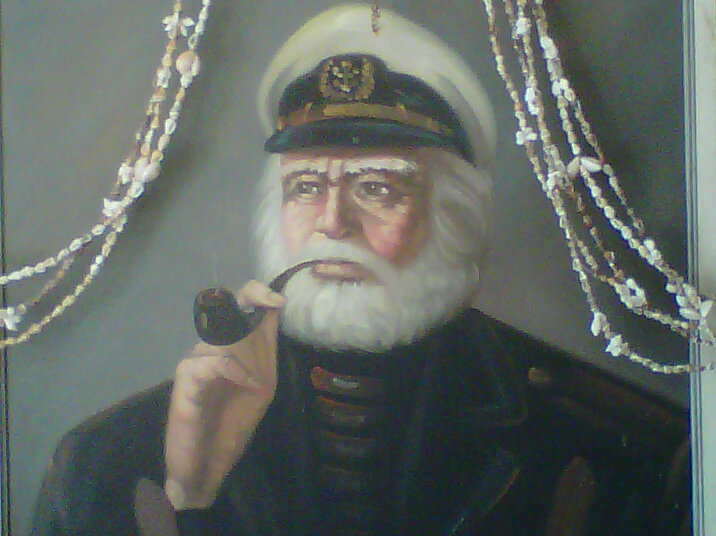 Lot 8: C. JEFFARES - 24in x 20in oil on canvas - pipe smoking bearded sea captain at the wheel - signed