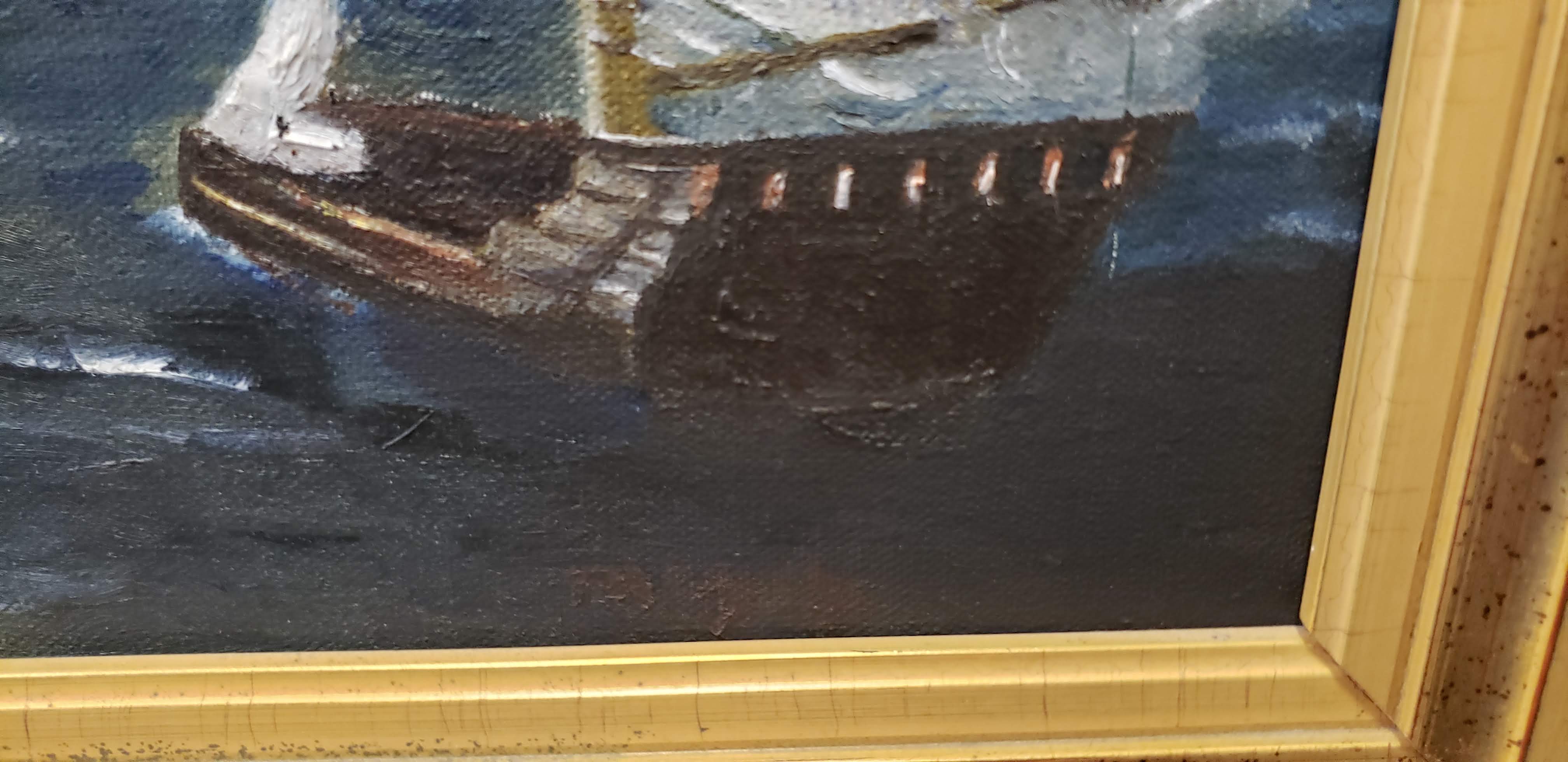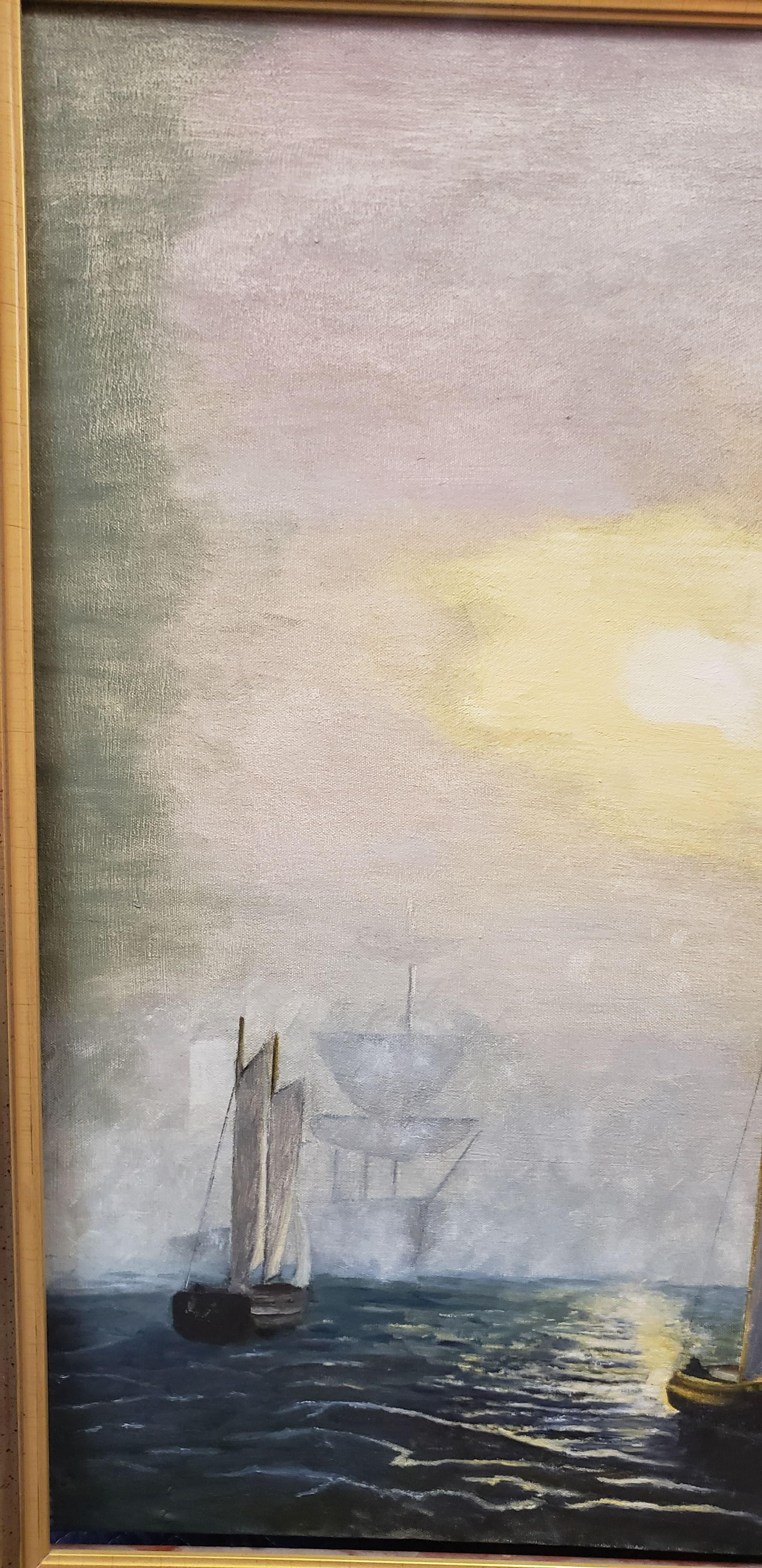 Oil painting found in the basement of an inn. Artist is unknown but signature looks to be initials m.y.? The painting is on a canvas and is in excellent conditioni. Please let me know what I should be looking for and I will be happy to provide it!
