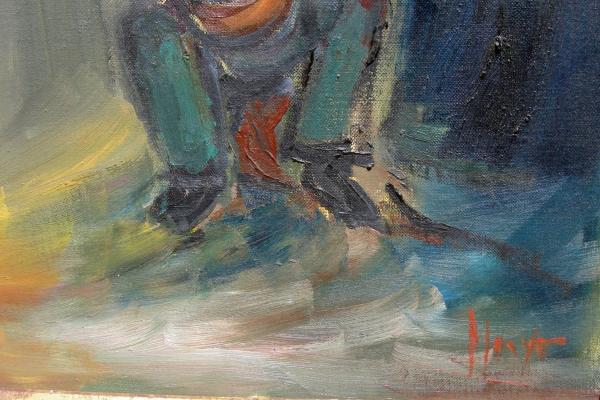 Oil painting depicts a group (likely gypsies) enjoying dancing & music.