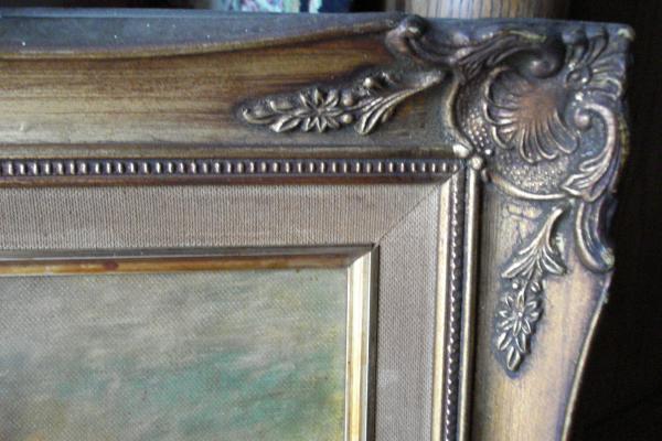 I purchased this painting from an elderly man several years ago. The paintings were so dirty that I thought they had been damaged from smoke. I cleaned them and was amazed as to what was underneath. The painting was so beautiful. I don't think it is an original, but I don't know where or by whom this painting was done. It does have a signature on the lower left facing the picture. The frams are old and made from wood. The back of the frame is stamped with S 6530. I don't know what it means. I have tried to research these numbers but have not been able to find anything. Any Help would be appreciated. Photos posted.