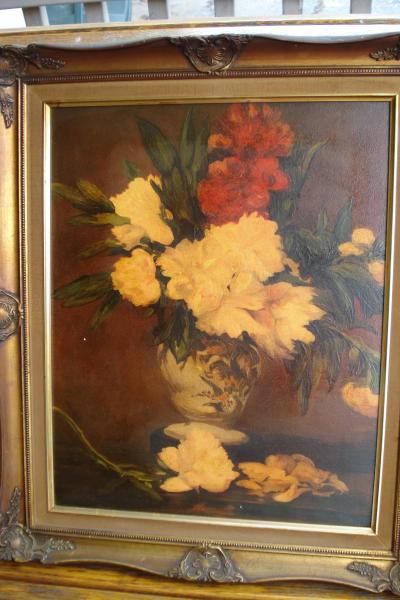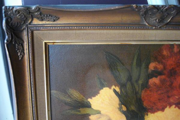 Purchased from elderly gentleman several years ago. Picture was very dirty and seemed to have smoke damage. I cleaned it and this picture was underneath. Photo posted. I don't beleive this picture is an original,but do not know where or by whom it was done. The fram is made of wood. The back of the frame is stamped with S 6529. Part of the back that is stretched seems to have been replaced by a newer wood. I have tried to research these number, but have not been able to find anything. Any Help would be appreciated.