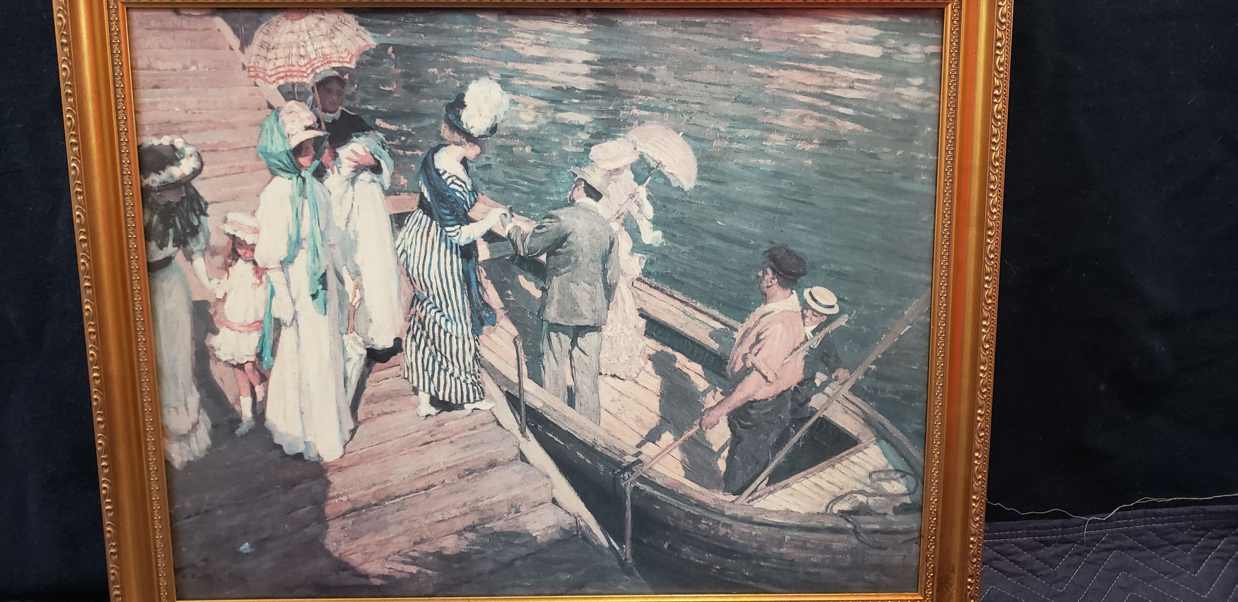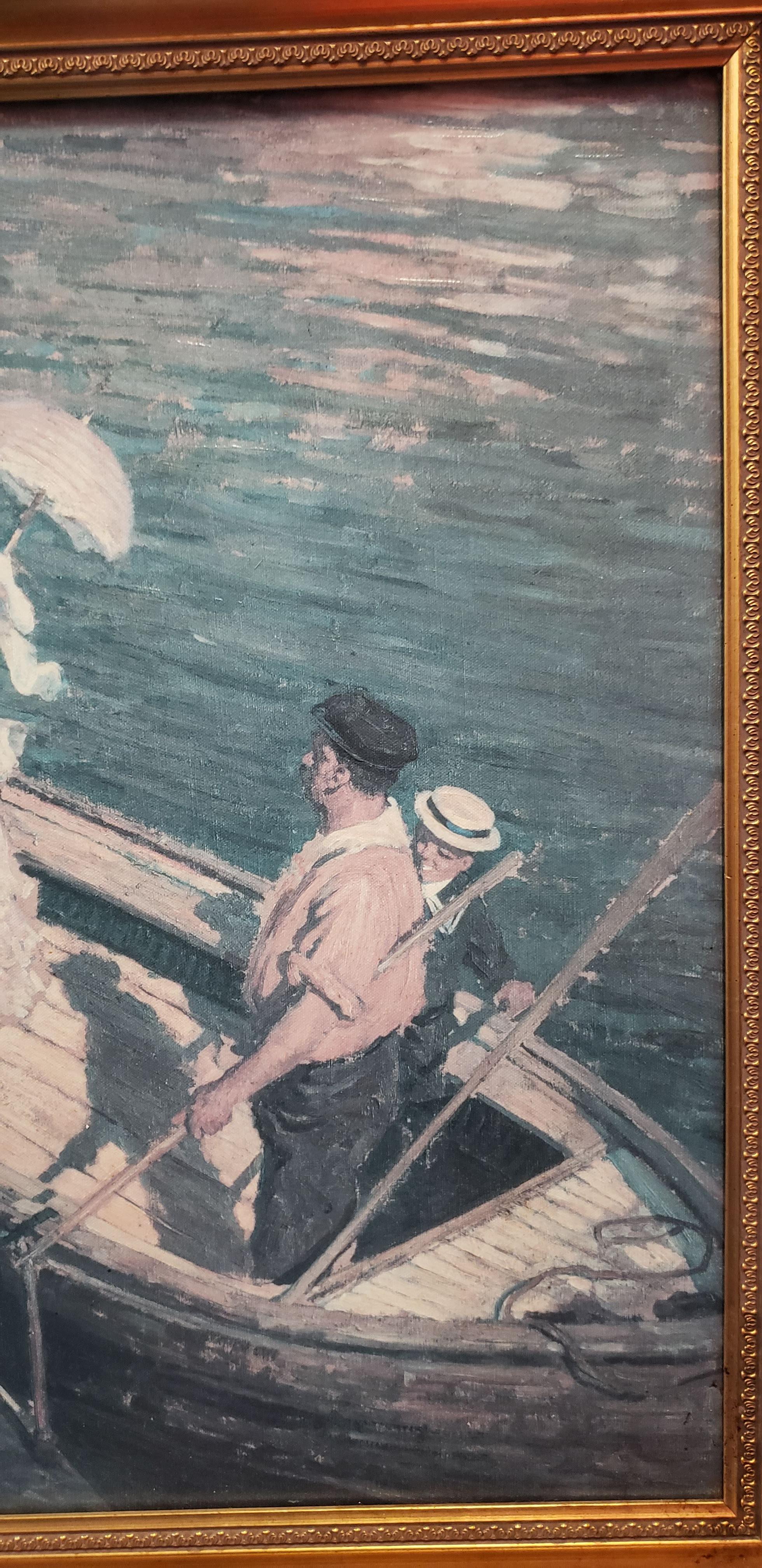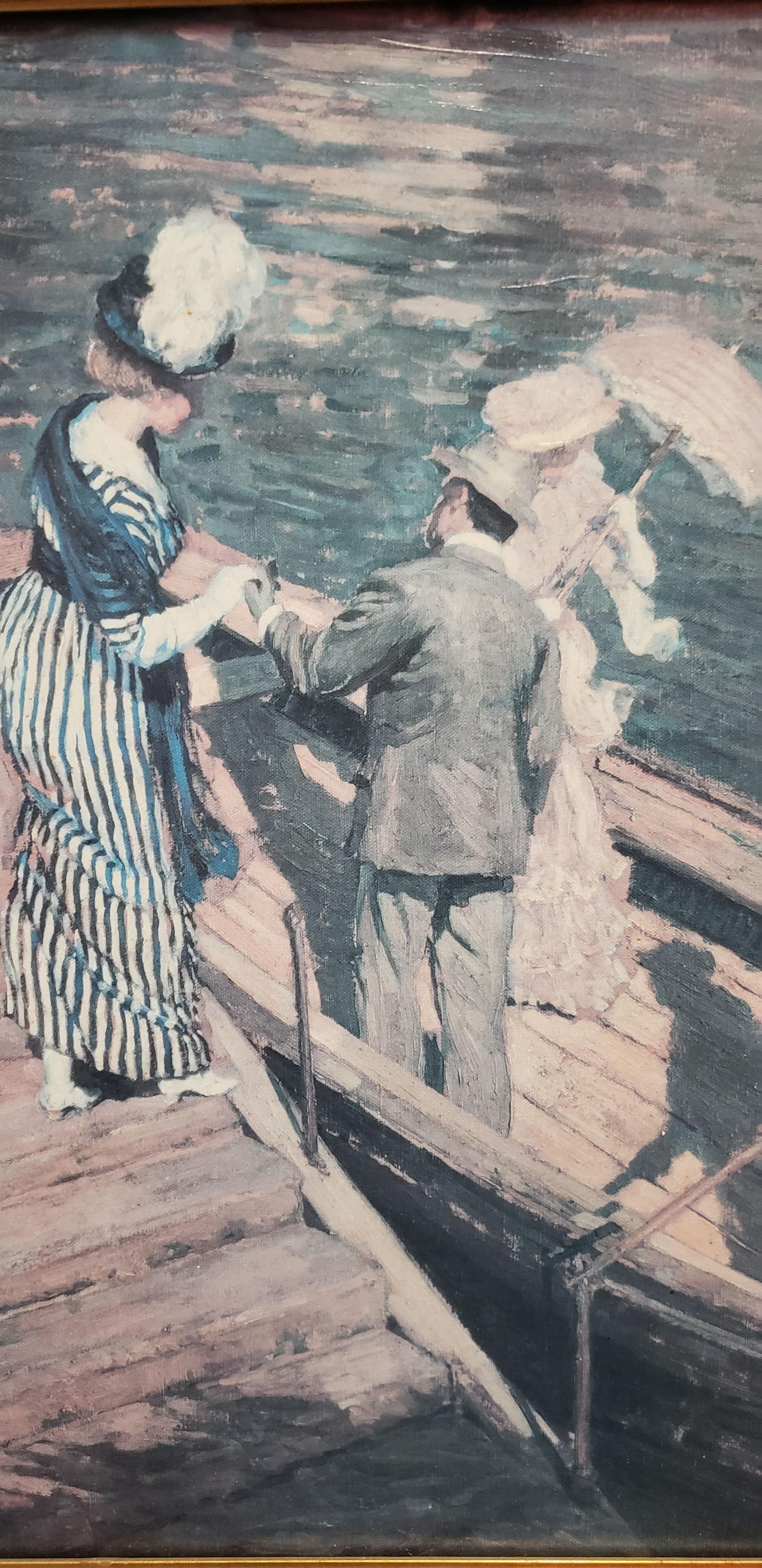Painted by E. Fox sometime between 1865-1870 while teaching (I believe).Subject: Little Boy & Boat