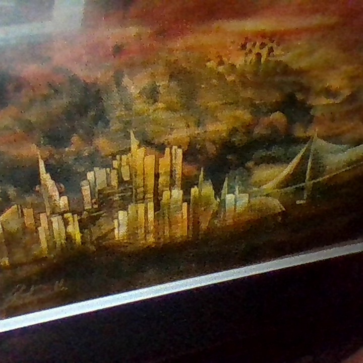 i got this picture a friend threw away along with a few more this one is of the golden gate bridge at sunset i believe but I can't figure the signature not much knowledge on artist here but I love the arts.
