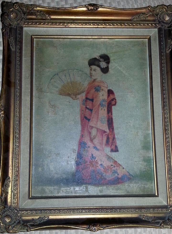 Found this oil painting at a Flea Market. Looks to be from around the 60's judging by frame style. Frame has "Made in Taiwan" stamp with what looks like the numbers/letters B3/613 size 12" > 16" on back. Canvas has the numbers 32774 stamped on back.