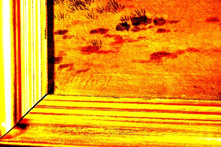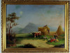 Oil painting depicting people storing hay in the barn, at harvest time.