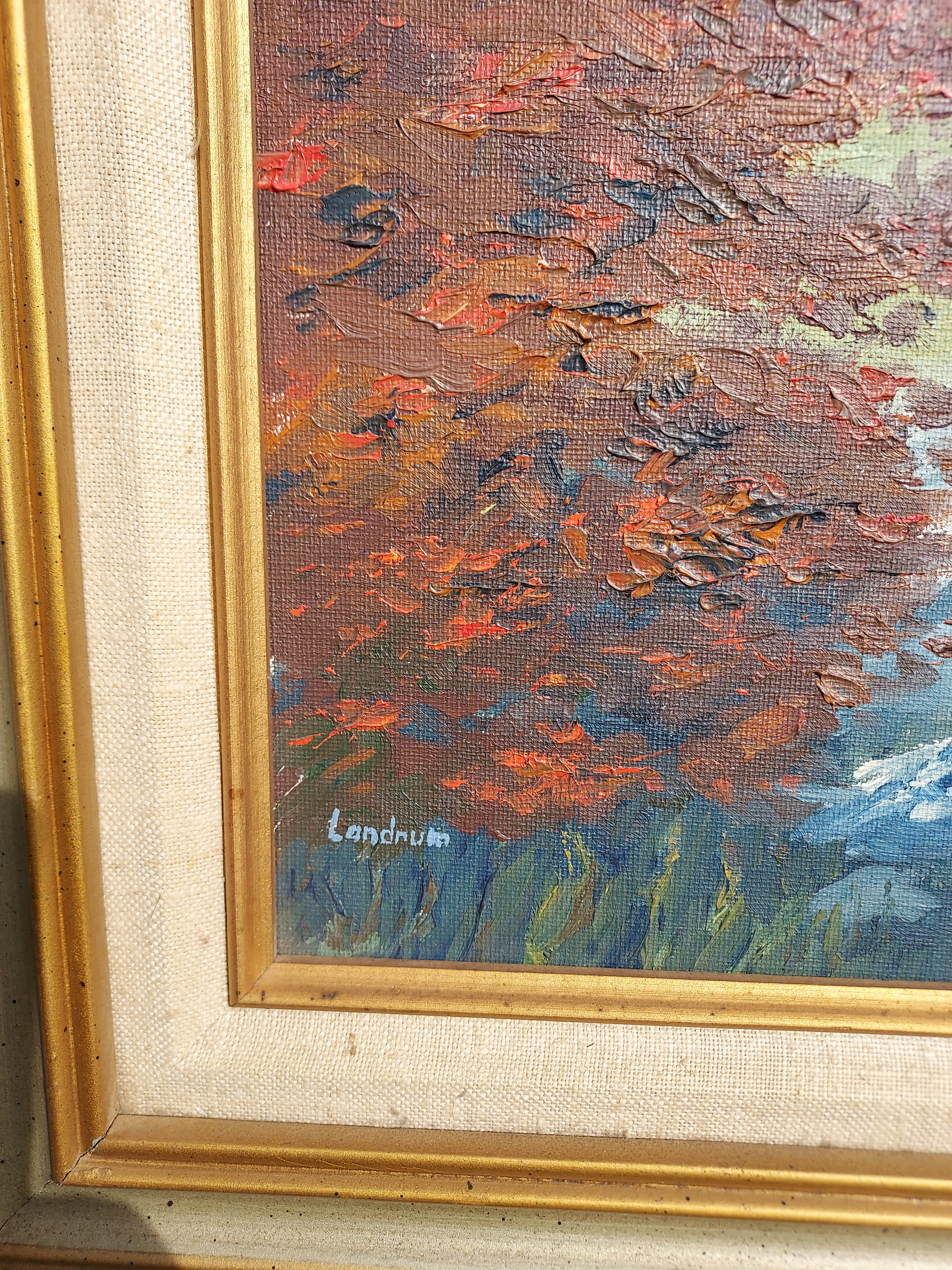 Oil Painting by Landrum. Made by Landrum. Materials: Oil on canvas. Estimated value: $100 – $275. Condition: Very Good. Moderate demand for original oil paintings, particularly landscapes.
