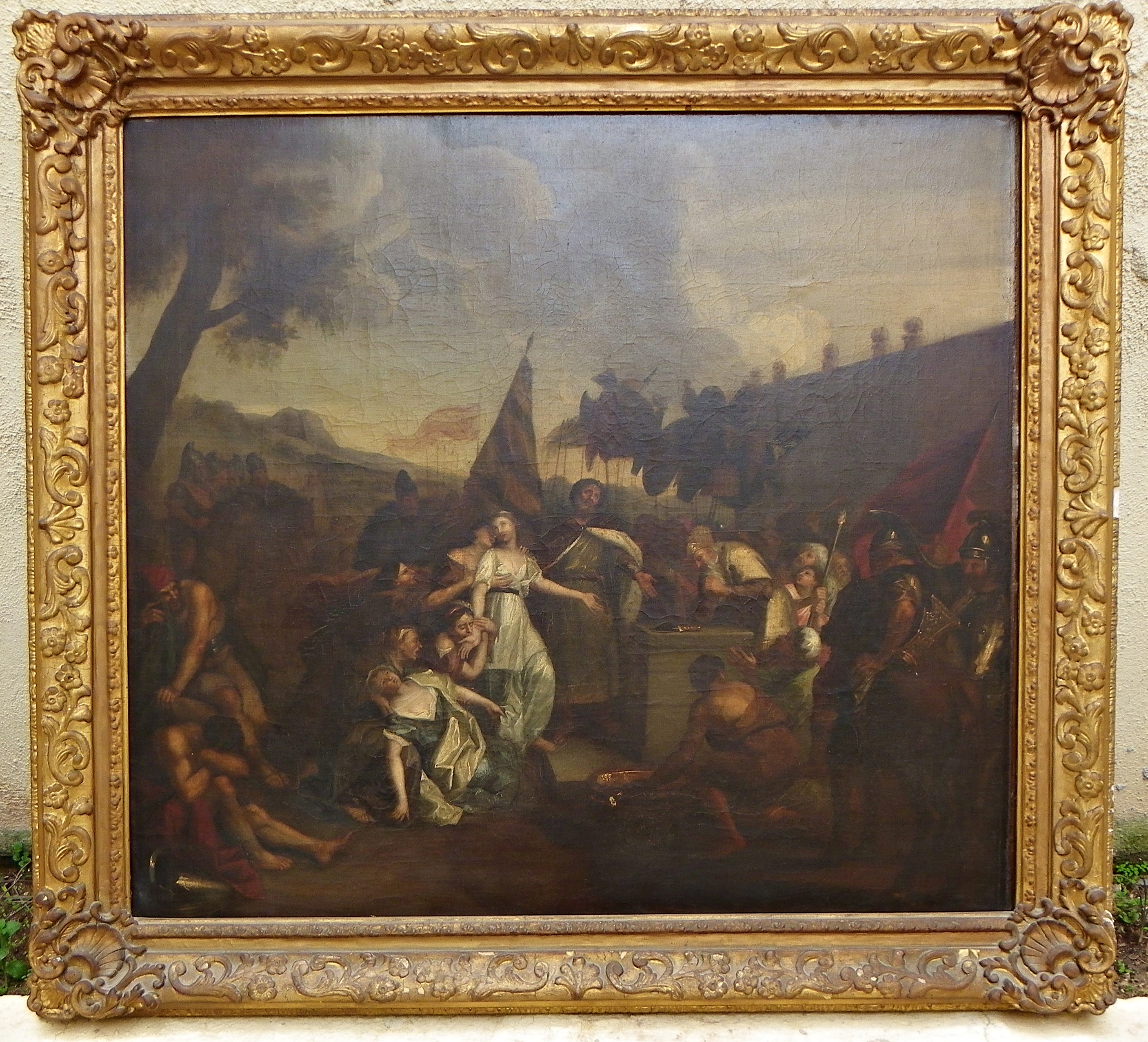 Antique oil painting on reverse note written as Jepthah by le Brun . Any information about this painting appreciated. Many Thanks