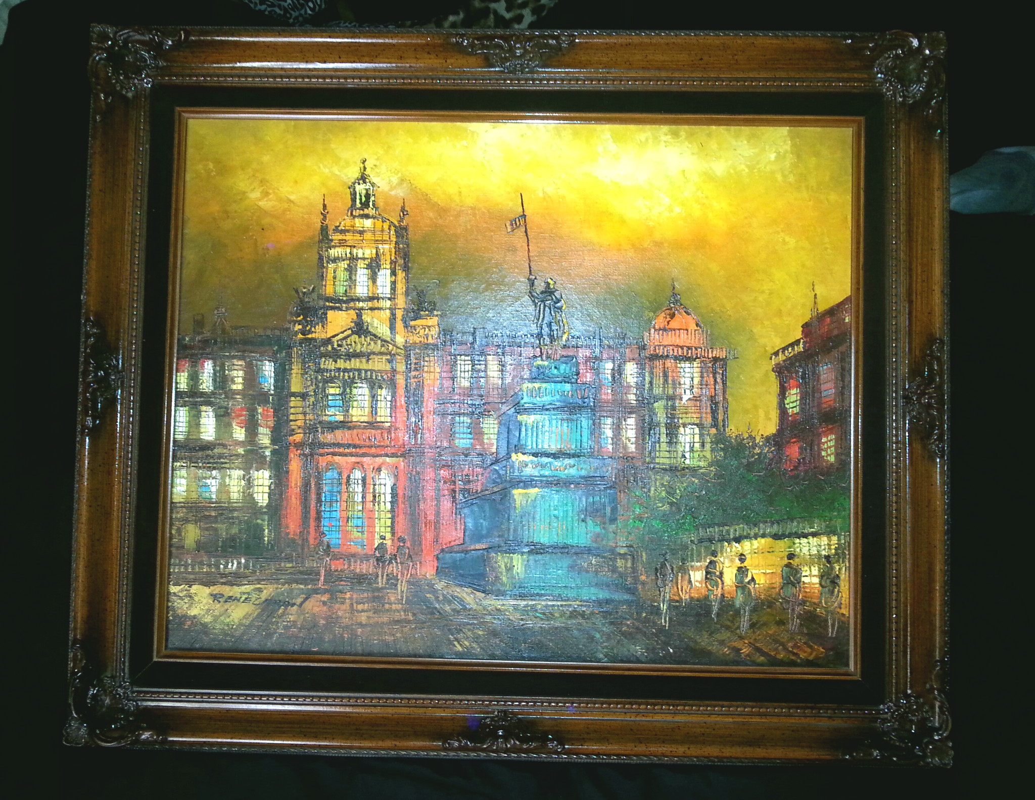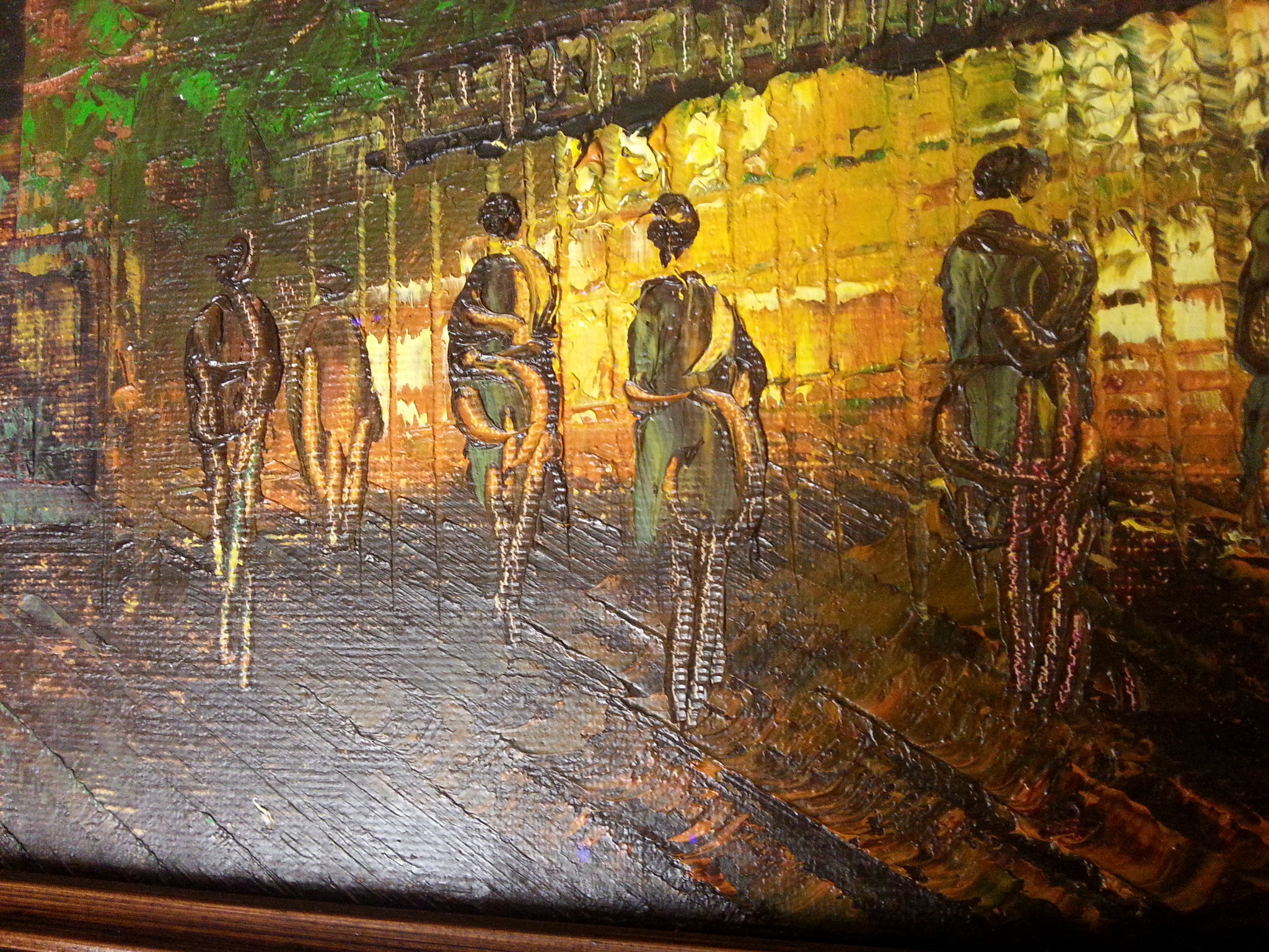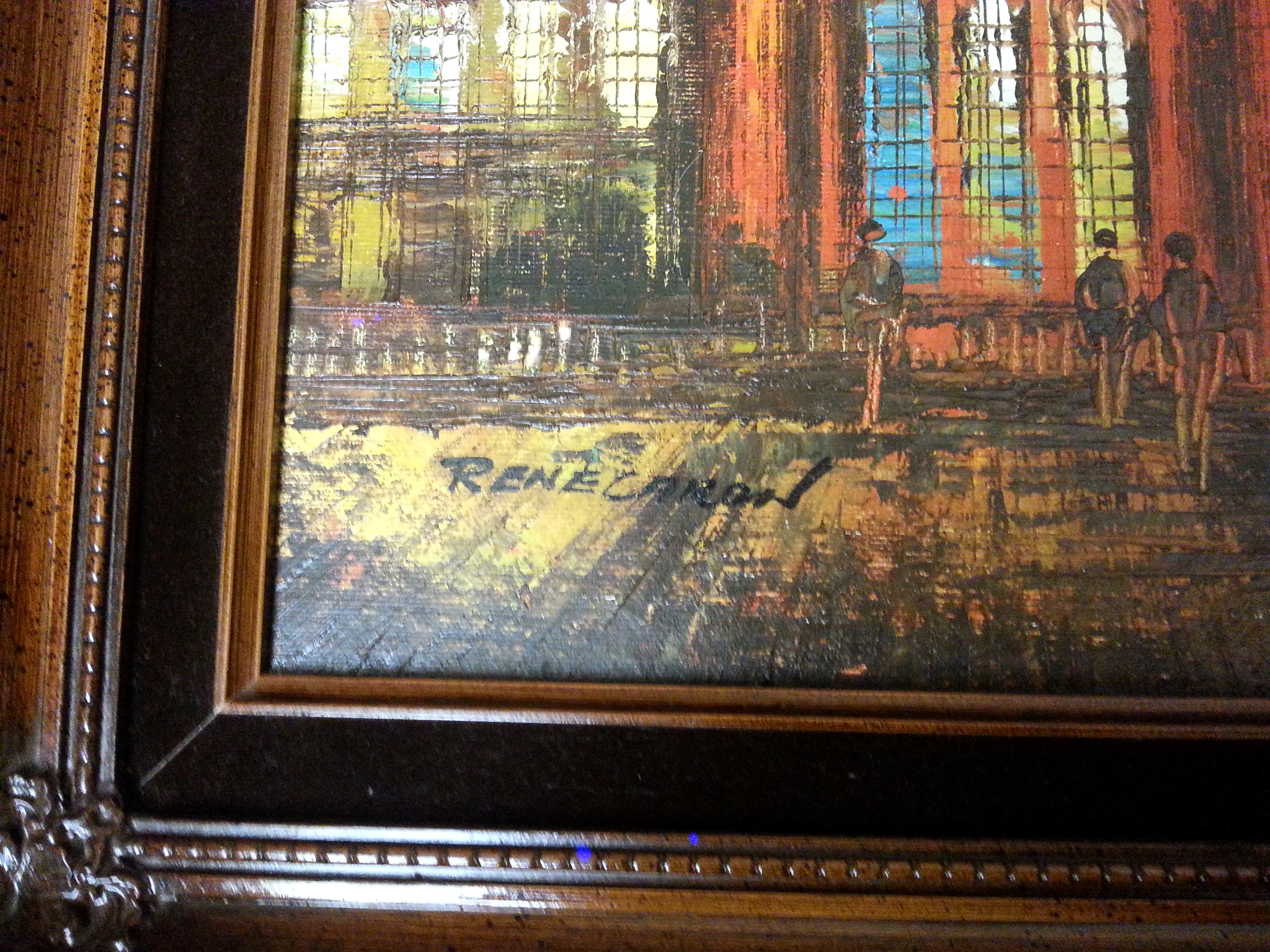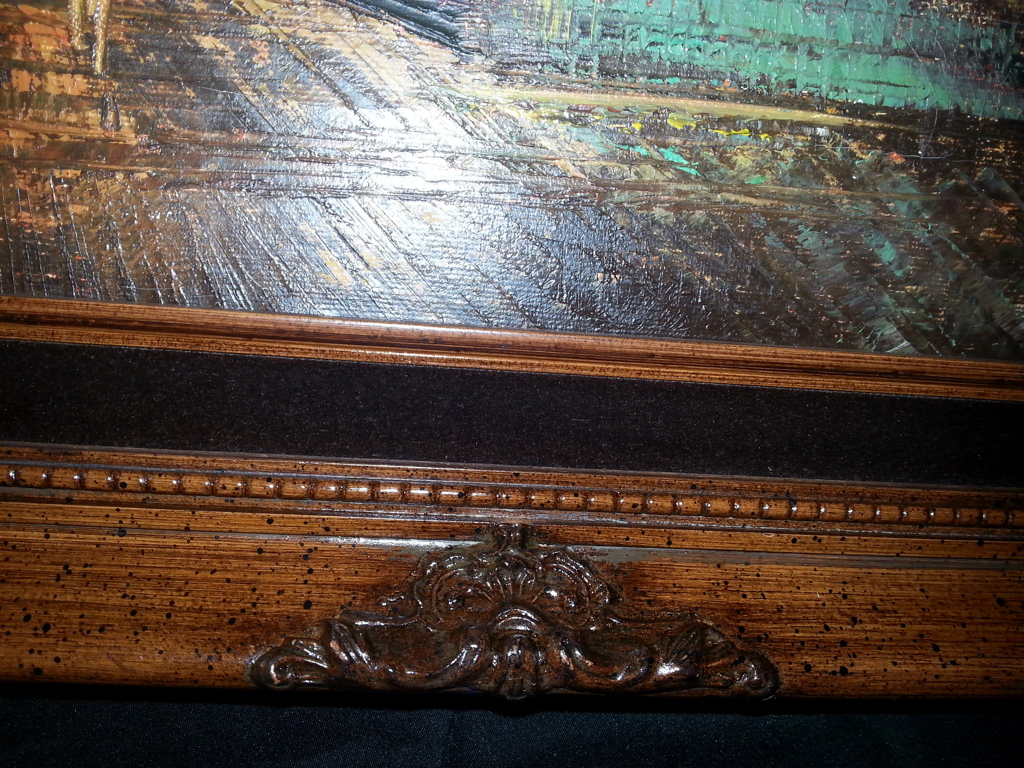 16"x20" paris night street scene. Oil painted on canvis streches. Dark brown frame very detailed. Lower left corner RENE CARON.