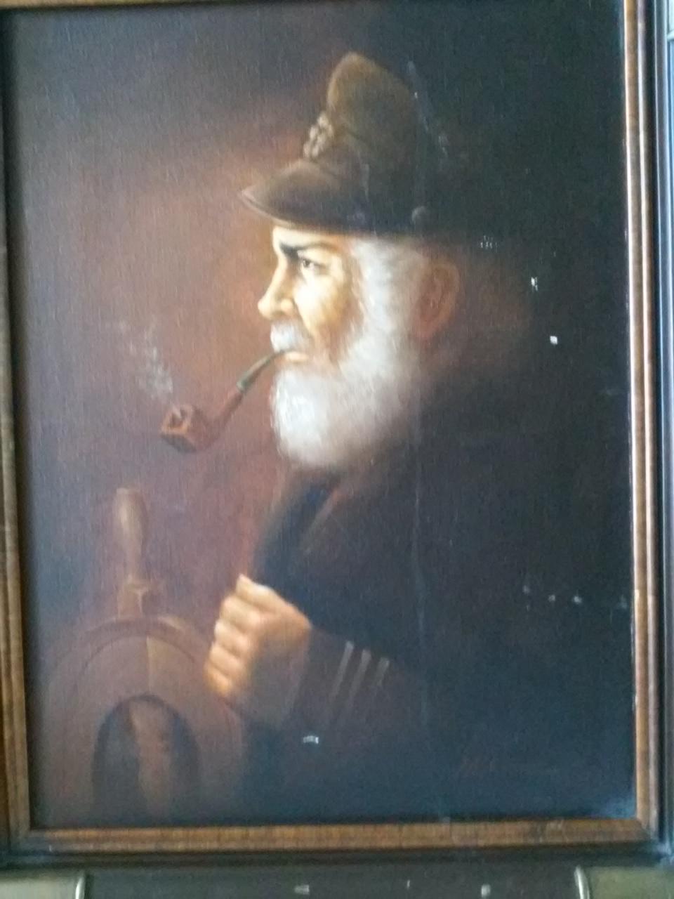 Oil Painting of A Ship Captain at the helm