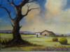 8 by 10 oil painting signed montanola 81. landscape scene, church.