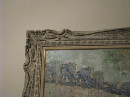 original oil painting of St Michaels Paris. signed. white washed original wood frame. excellent condition. unknown price, date or artist. would like any information on this painting.