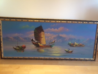 Oil painting of chinese junks size 180cm by 70cm, age c1970's
