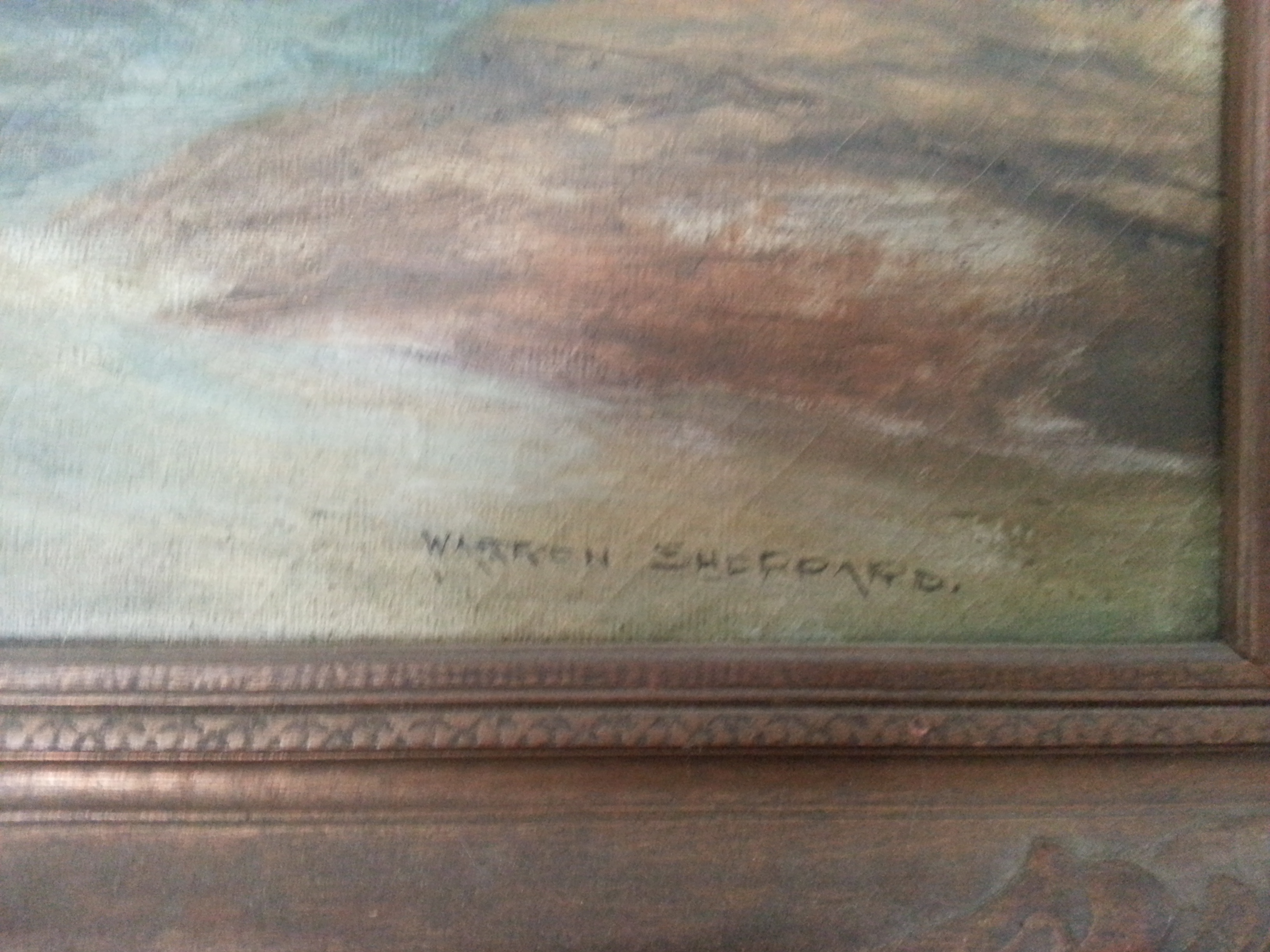 APPROX. 29 x 18 oil paint moon rise over ocean
