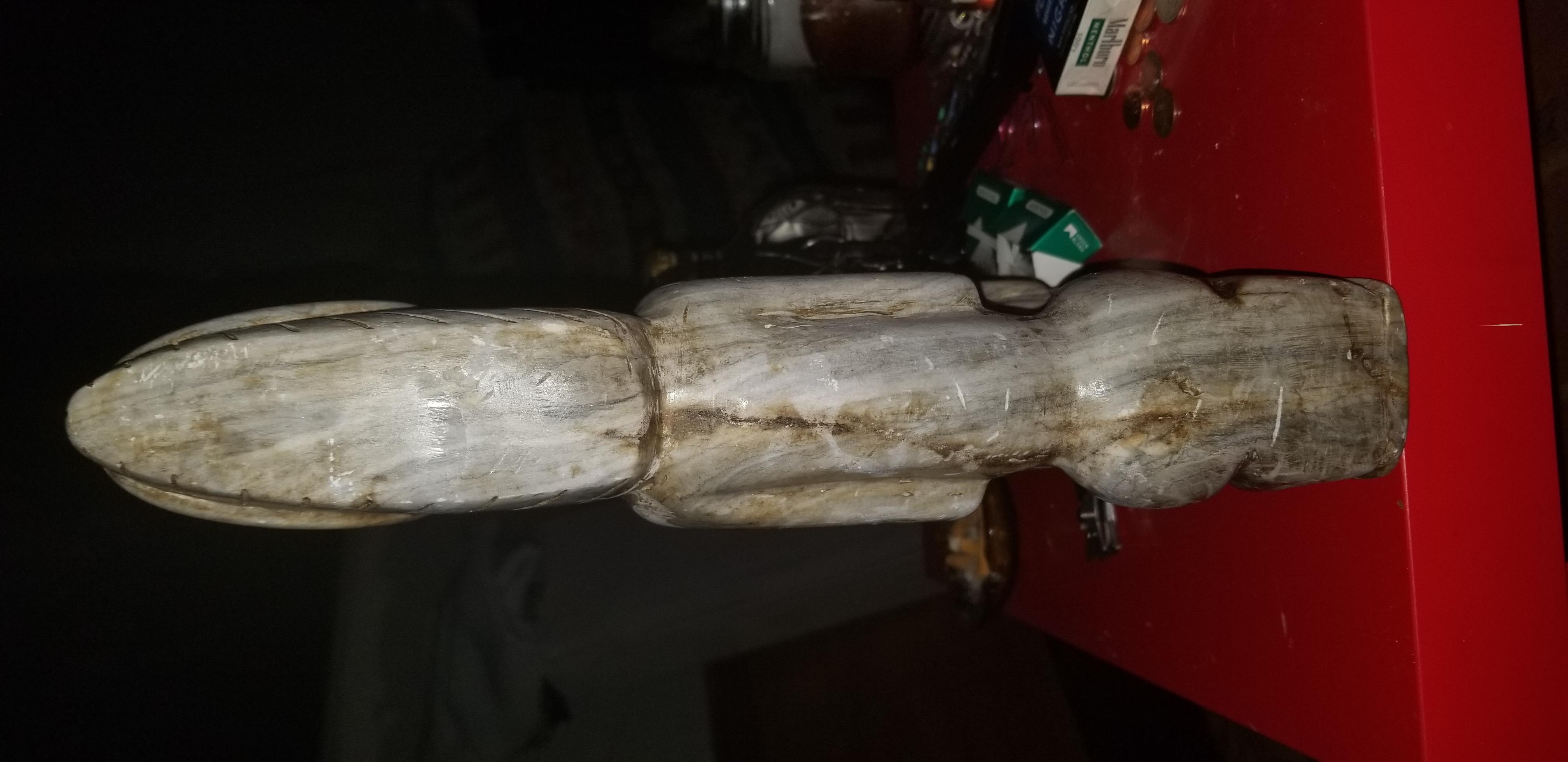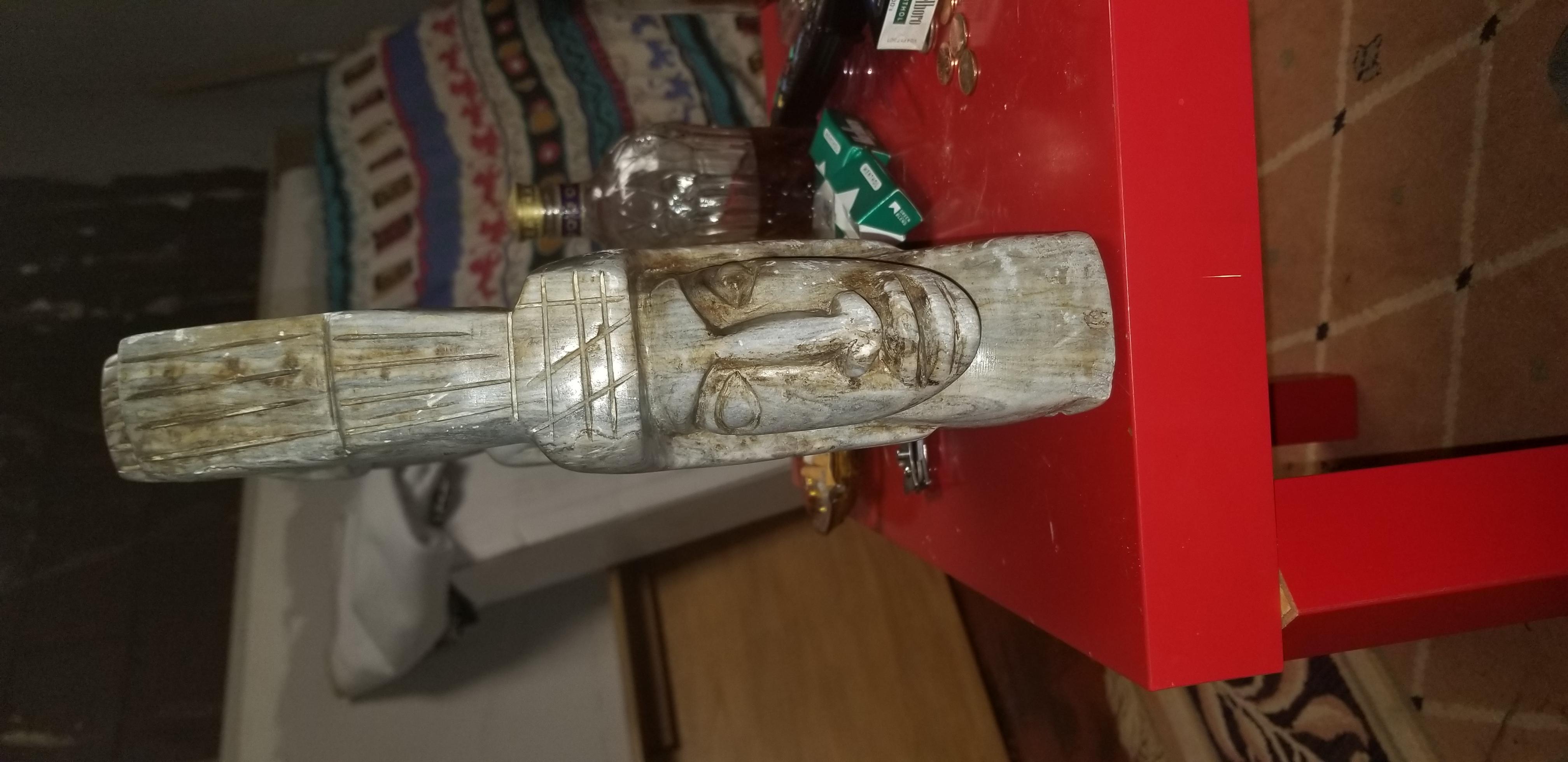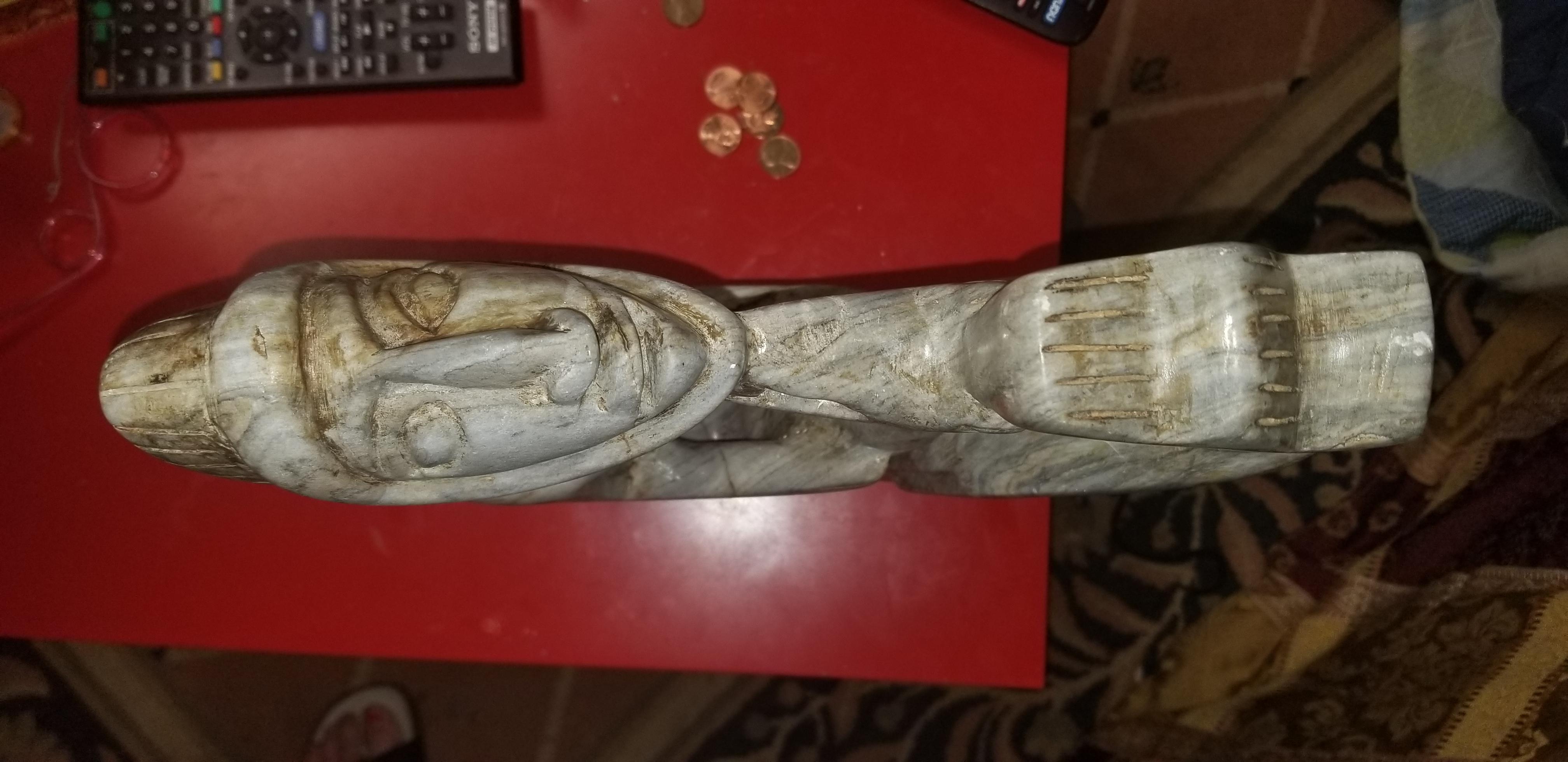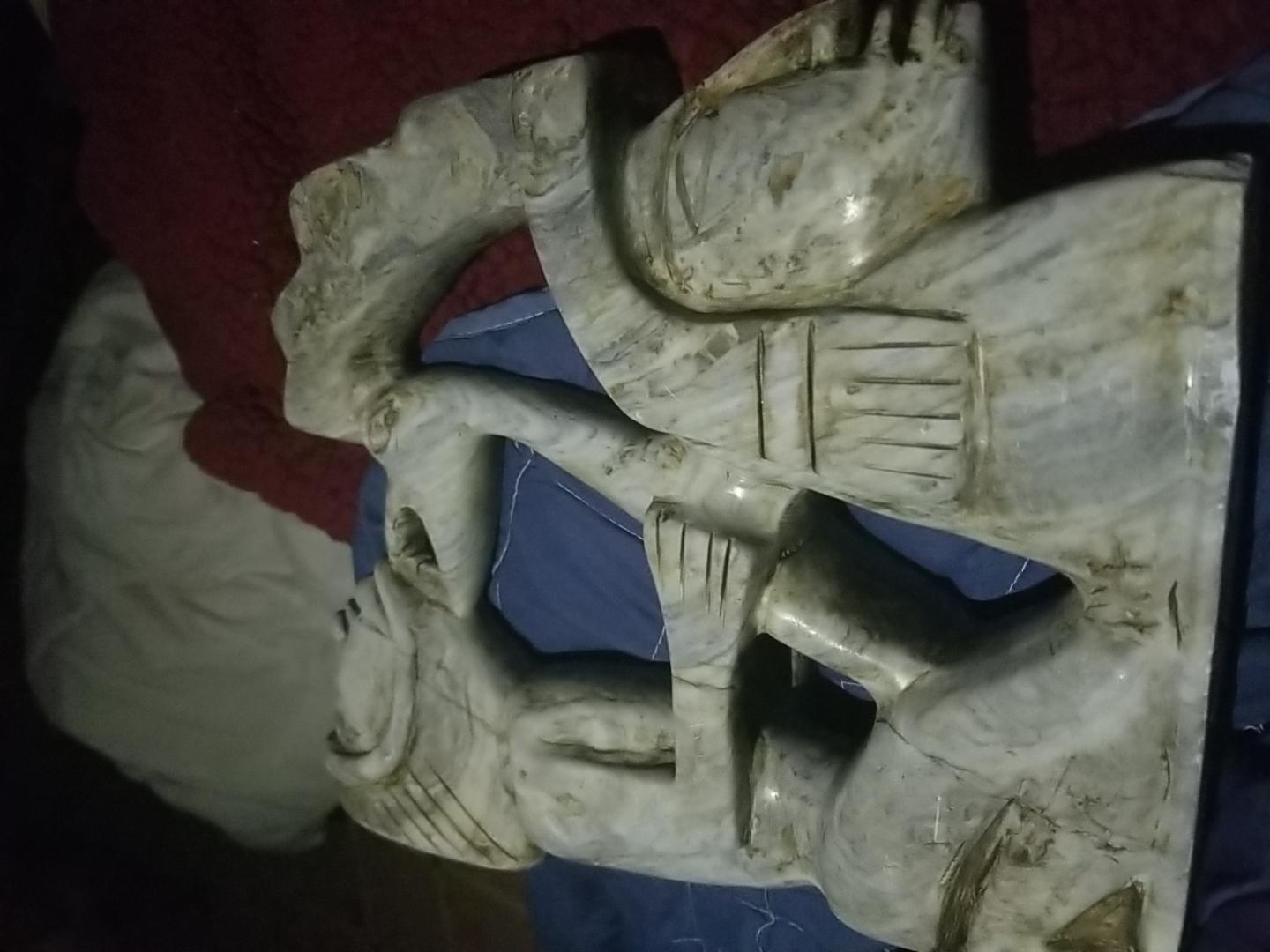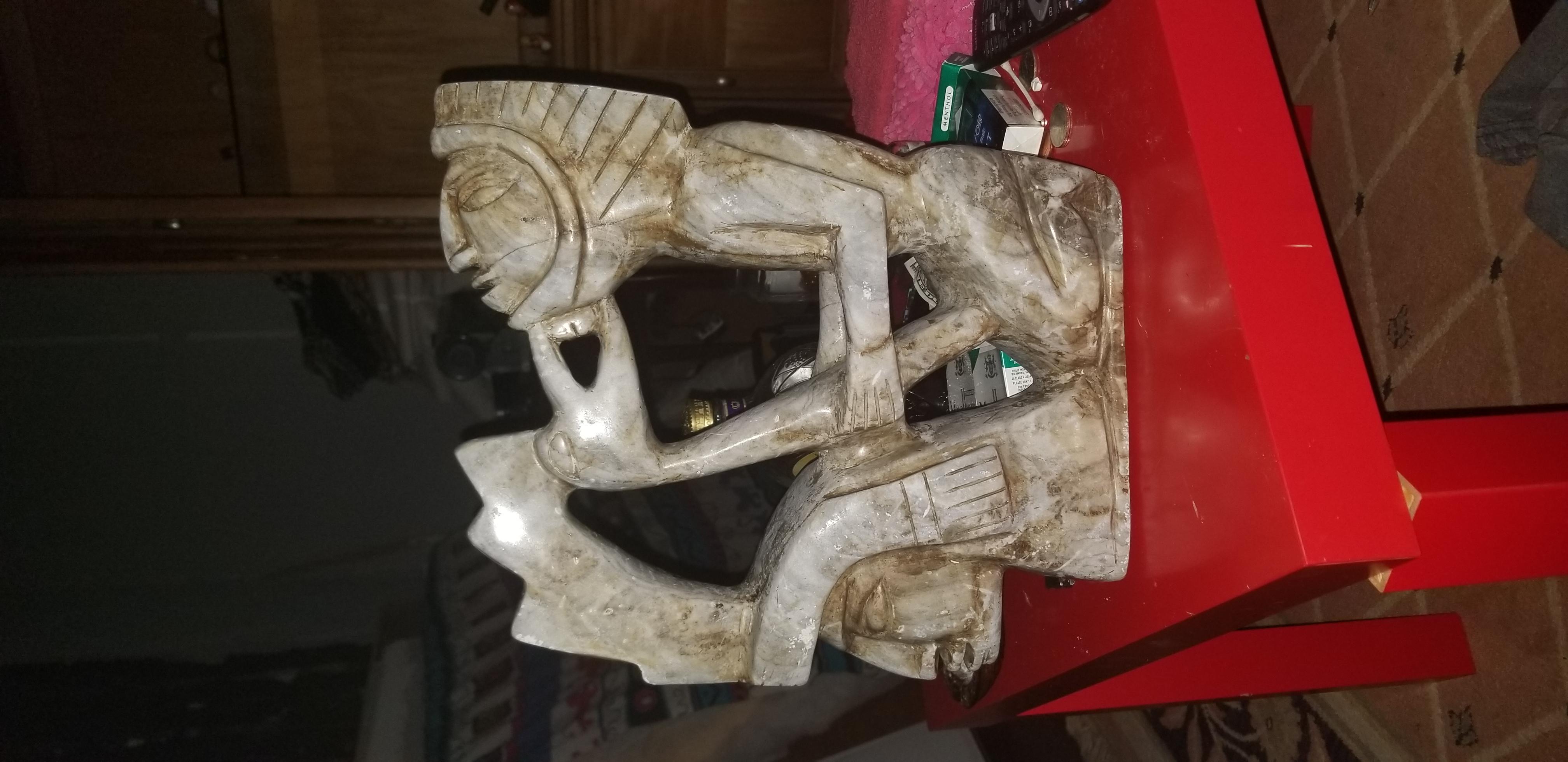 Description Looks as though they are idolizing some kind of symbolic not sure and its made of marble about 13in tall bout 11in wide with bout 3in depth